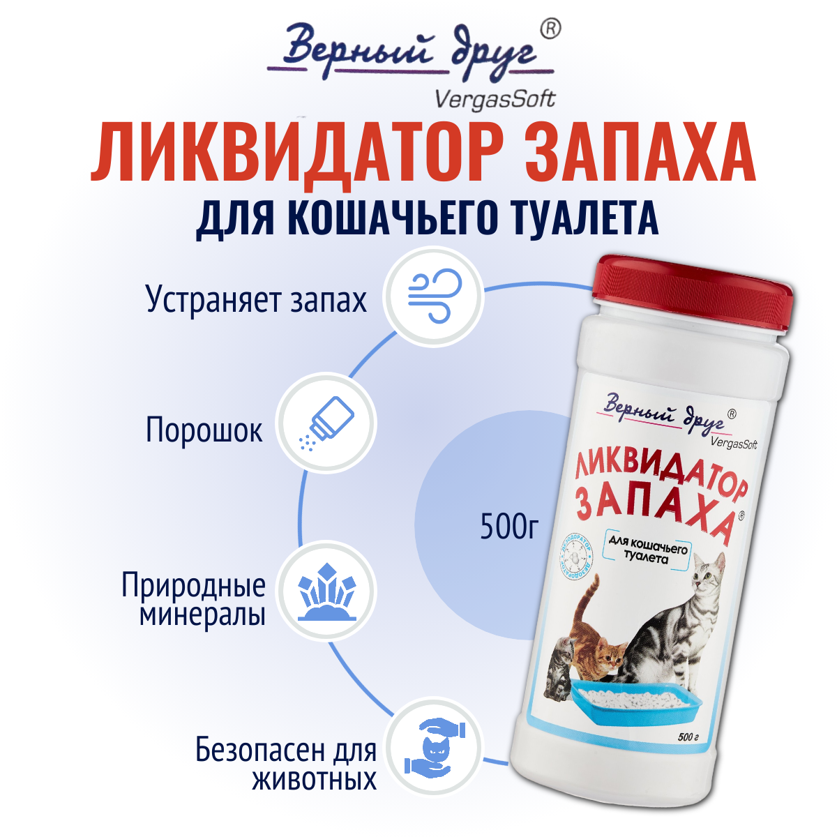 Верный друг - ликвидатор запаха для кошачьего туалета 500г