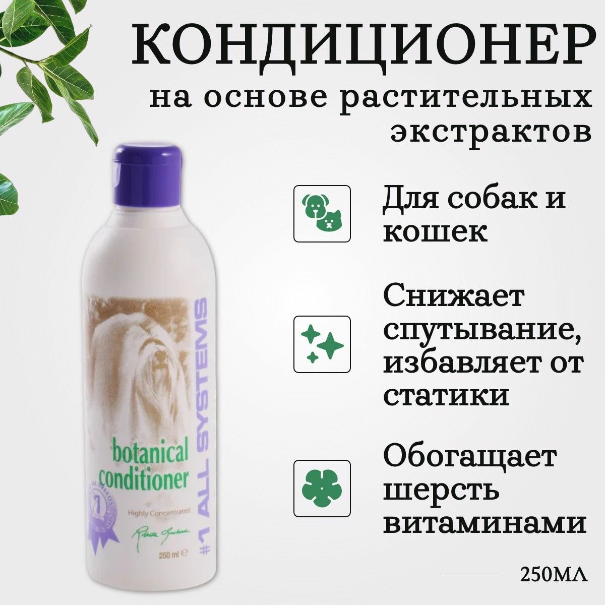 Кондиционер #1 All Systems Botanical Conditioner на основе растительных экстрактов для кошек и собак , 500 мл