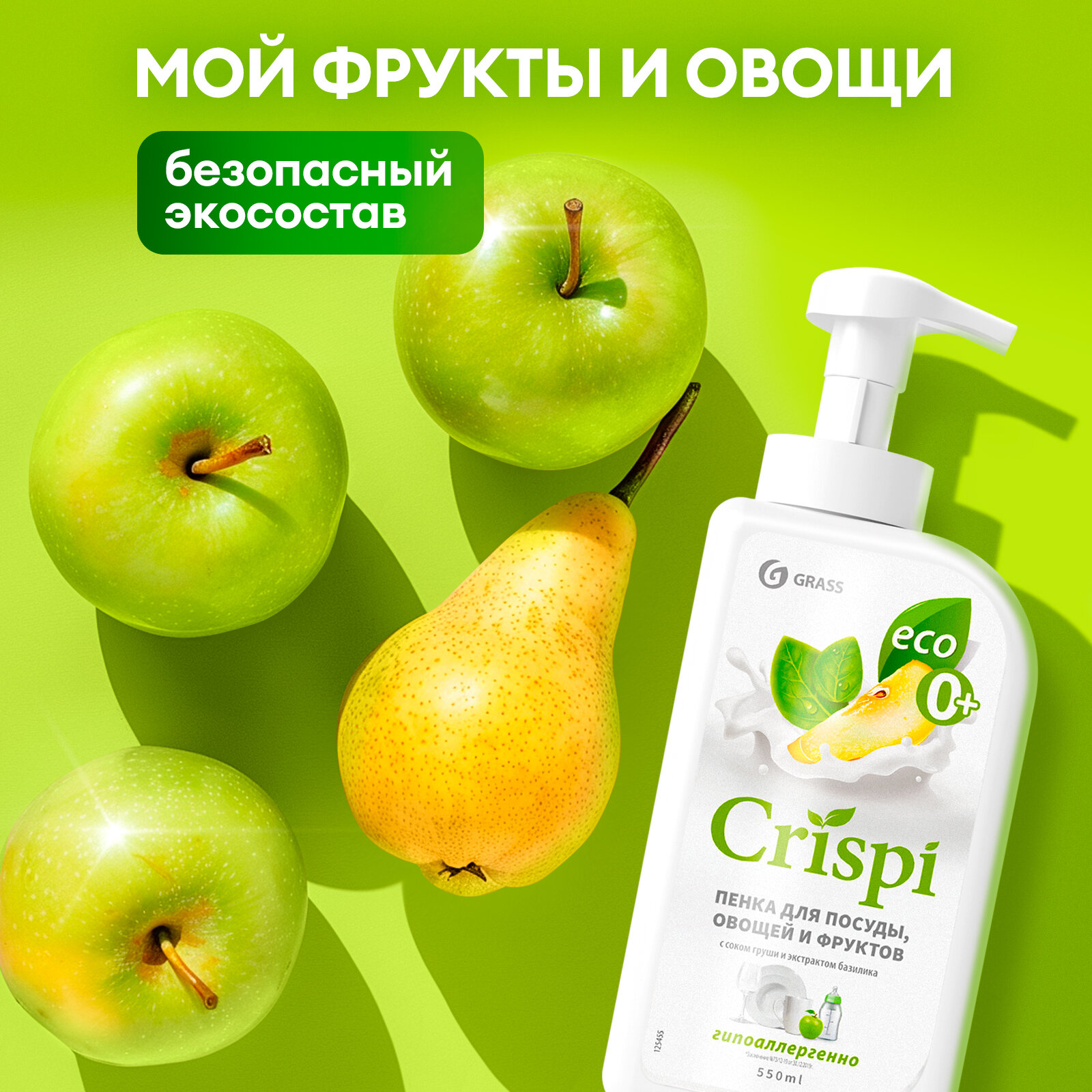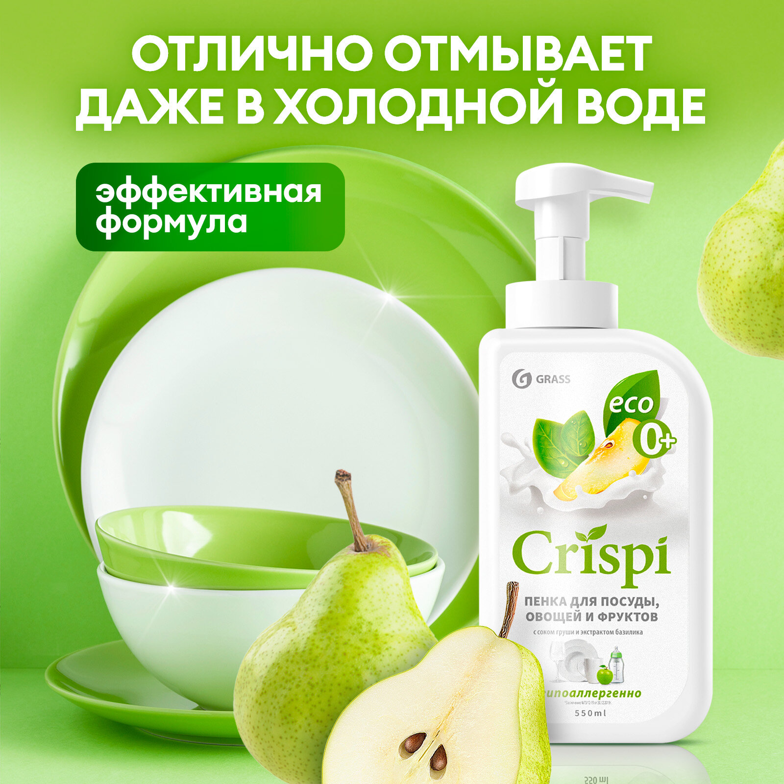 Средство для мытья посуды, овощей, фруктов эко-пенка 550 мл, CRISPI by GRASS "Груша и базилик", 14254, 125455 608731