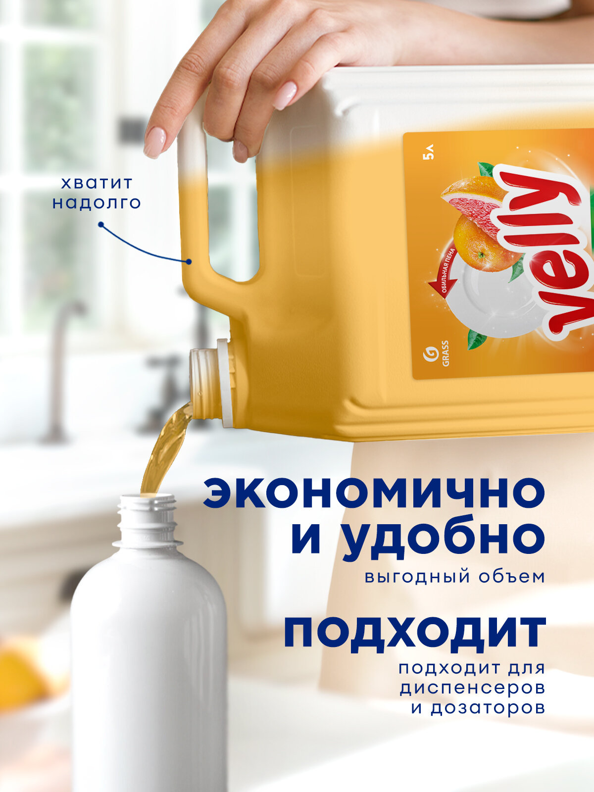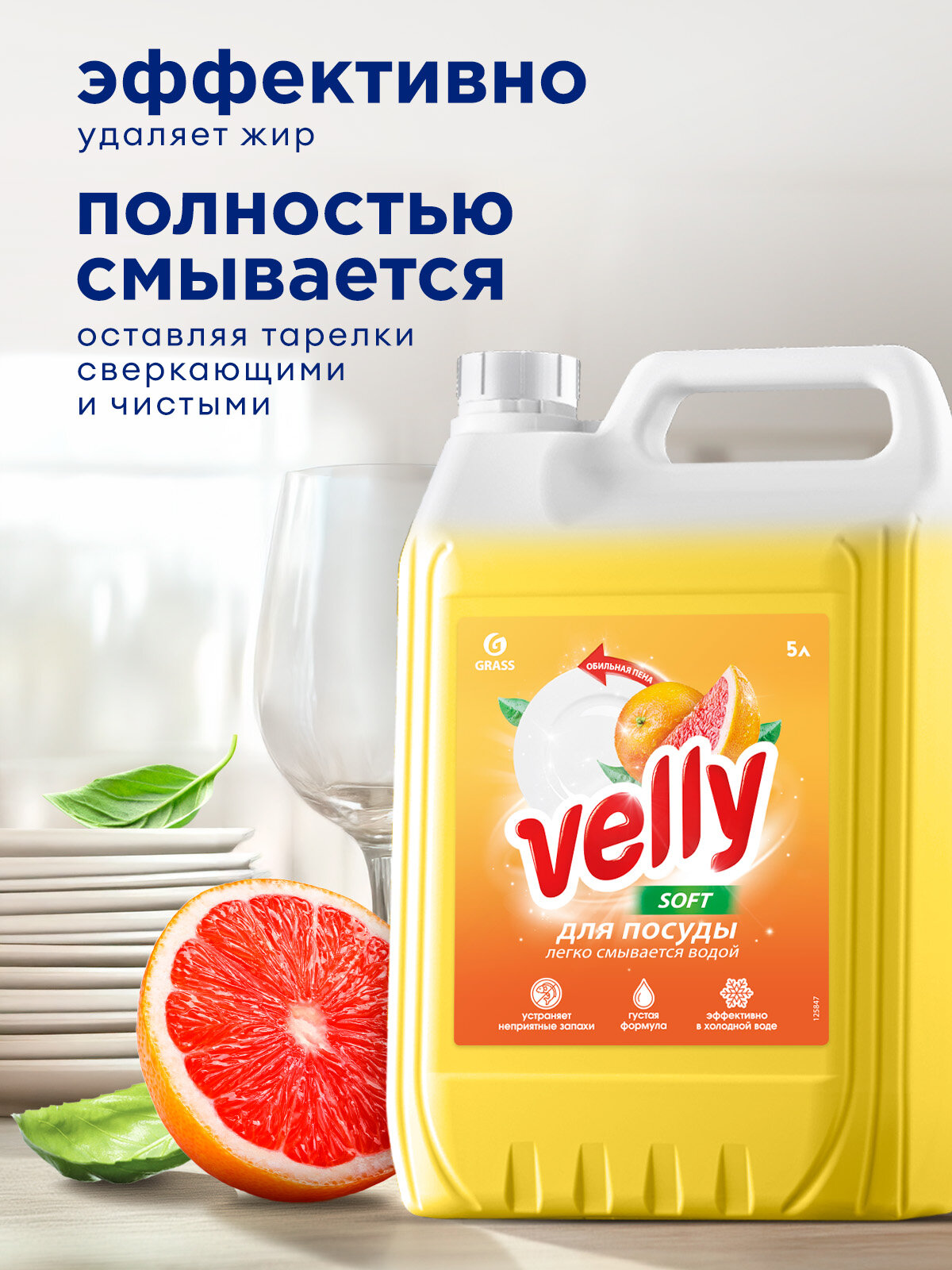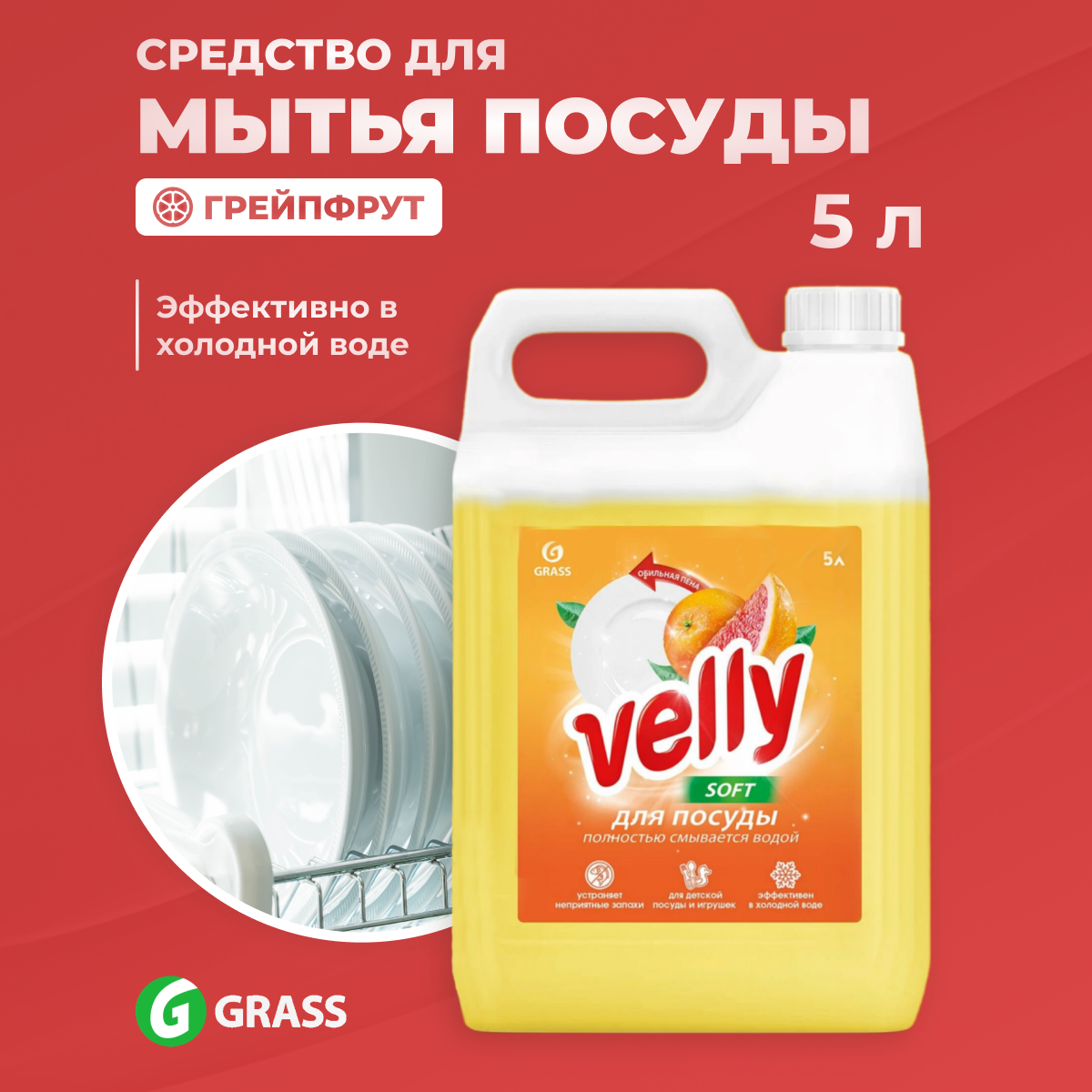 Купить Средство гель для посуды Grass Velly, грейпфрут, гипоаллергенный, 5л