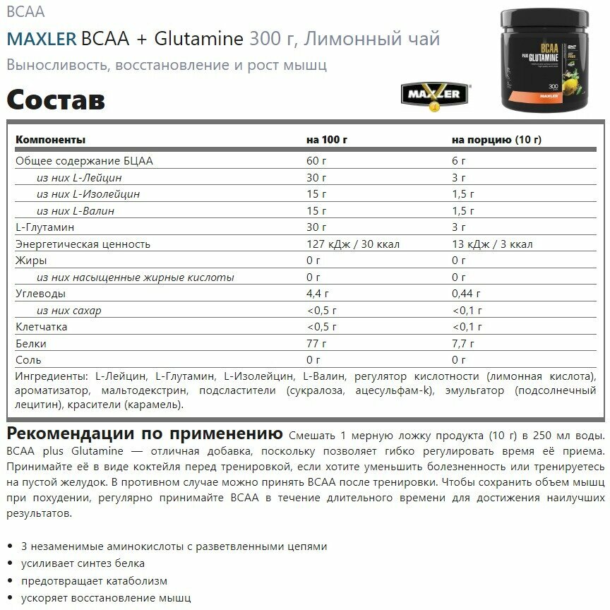 СохранитьBCAA + Glutamine 300 гр для дополнительной энергии и восстановления (Maxler) Лимонный чай интересное: