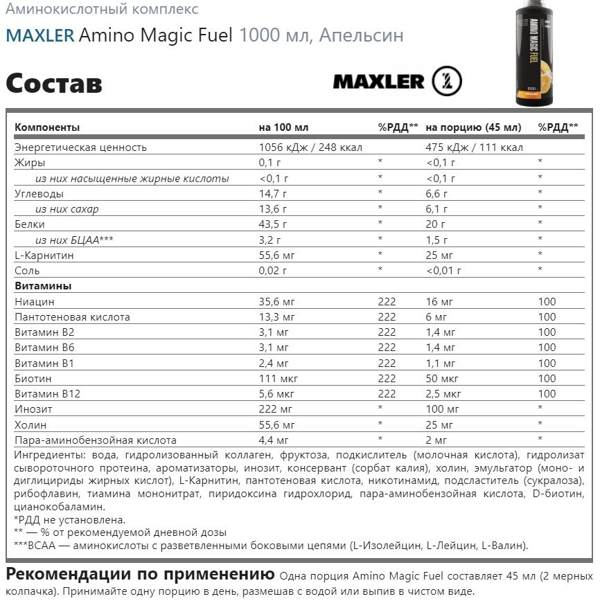 Ниже Вы можете прочитать отзывы на Аминокислотный комплекс в жидкой форме Amino Magic Fuel 1000 мл. (Maxler) Апельсин, ознакомится с подробными характеристиками, посмотреть интересные обзоры и фотографии на Аминокислотный комплекс в жидкой форме Amino Magic Fuel 1000 мл. (Maxler) Апельсин.