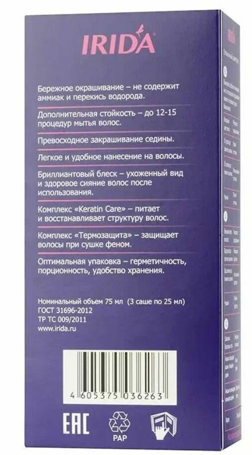 Оттеночный шампунь IRIDA IRIDA.M Оттеночный шампунь Красное дерево 3*25мл Красное дерево 3*25 мл