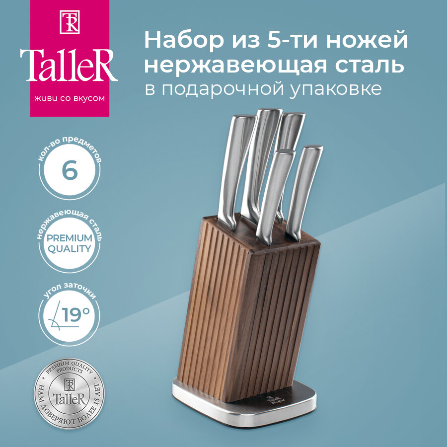 СохранитьНабор ножей на подставке TalleR TR-22077 Хартфорд, 5 шт острые интересное: