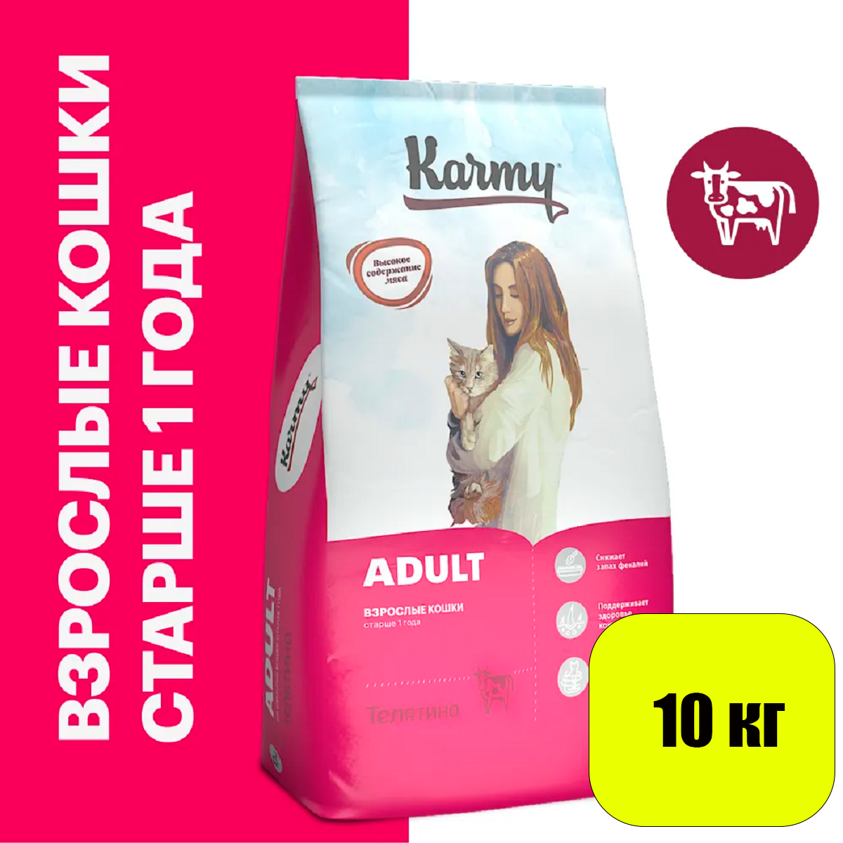 Karmy корм сухой для взрослых кошек, телятина 10 кг / Карми Adult Cat Beef