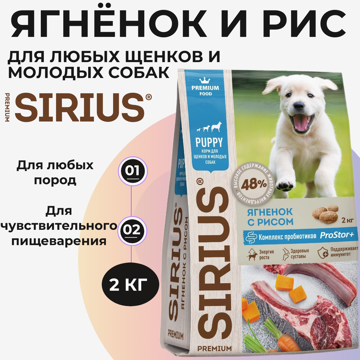 Сухой корм Sirius для щенков и молодых собак всех пород, ягненок и рис, 2 кг