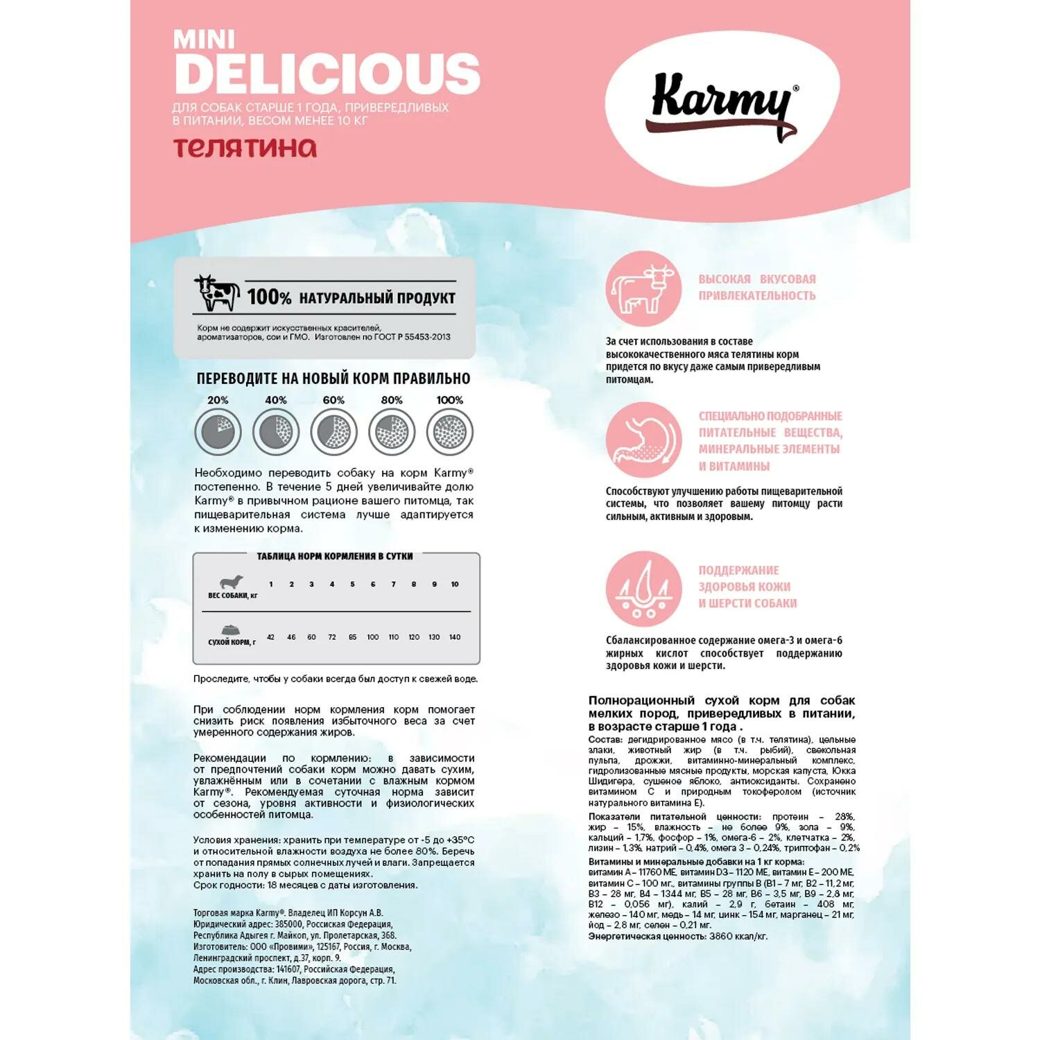 Корм Karmy Mini Adult для собак малых пород, с индейкой, 10 кг
