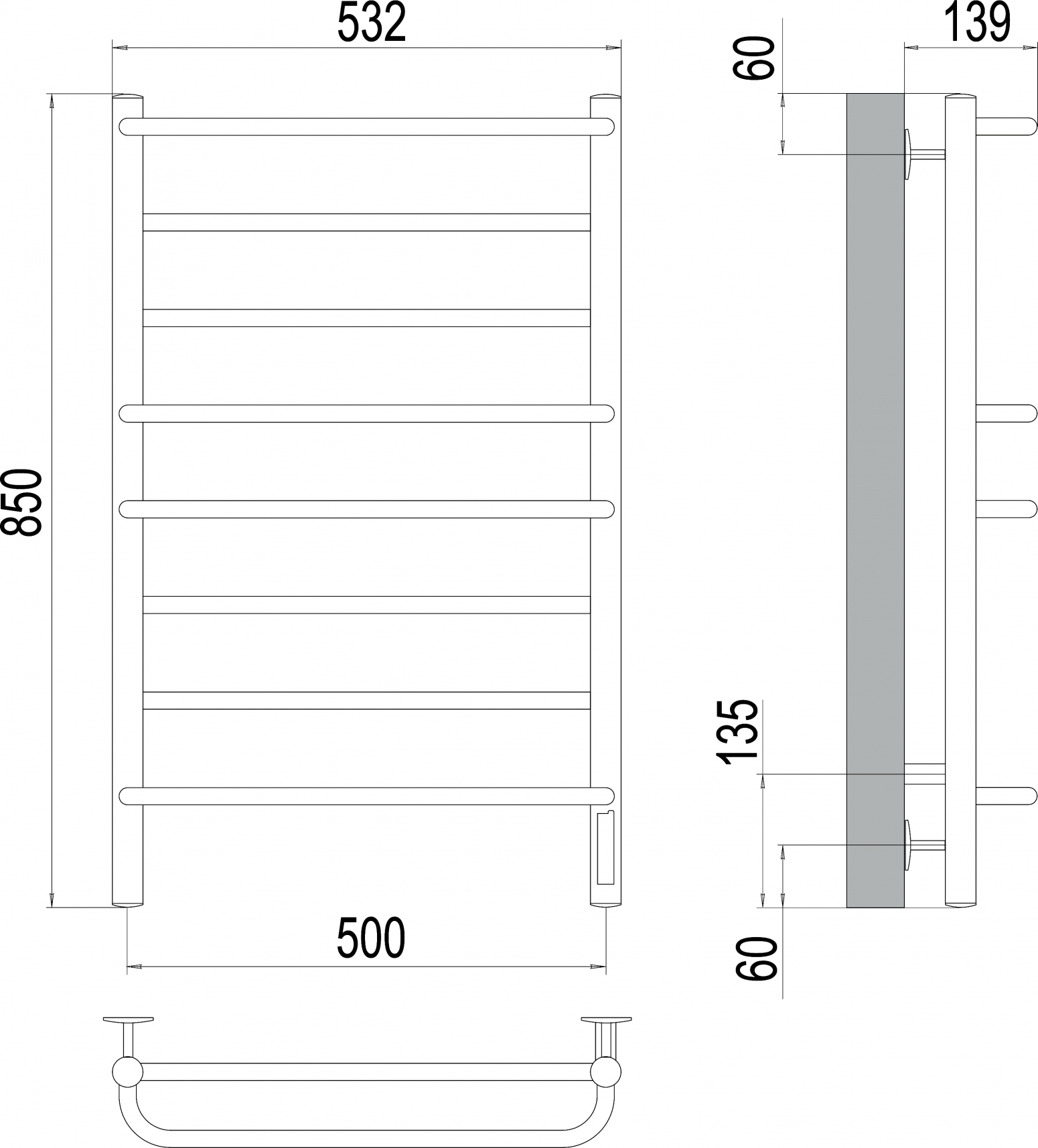| Отзыв: | очень нравится, что перекладины на разном уровне - удобно сушить полотенца. Греет очень хорошо, мы не включаем больше 1-2 уровня. Легкая установка, сварочные швы очень аккуратные |