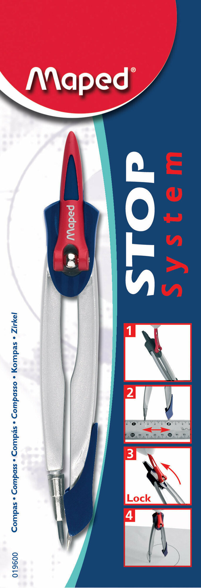 Циркуль MAPED (Франция) "Stop System", 130 мм, металлический, грифель 2 мм, блистер, 019600 - 1 шт.