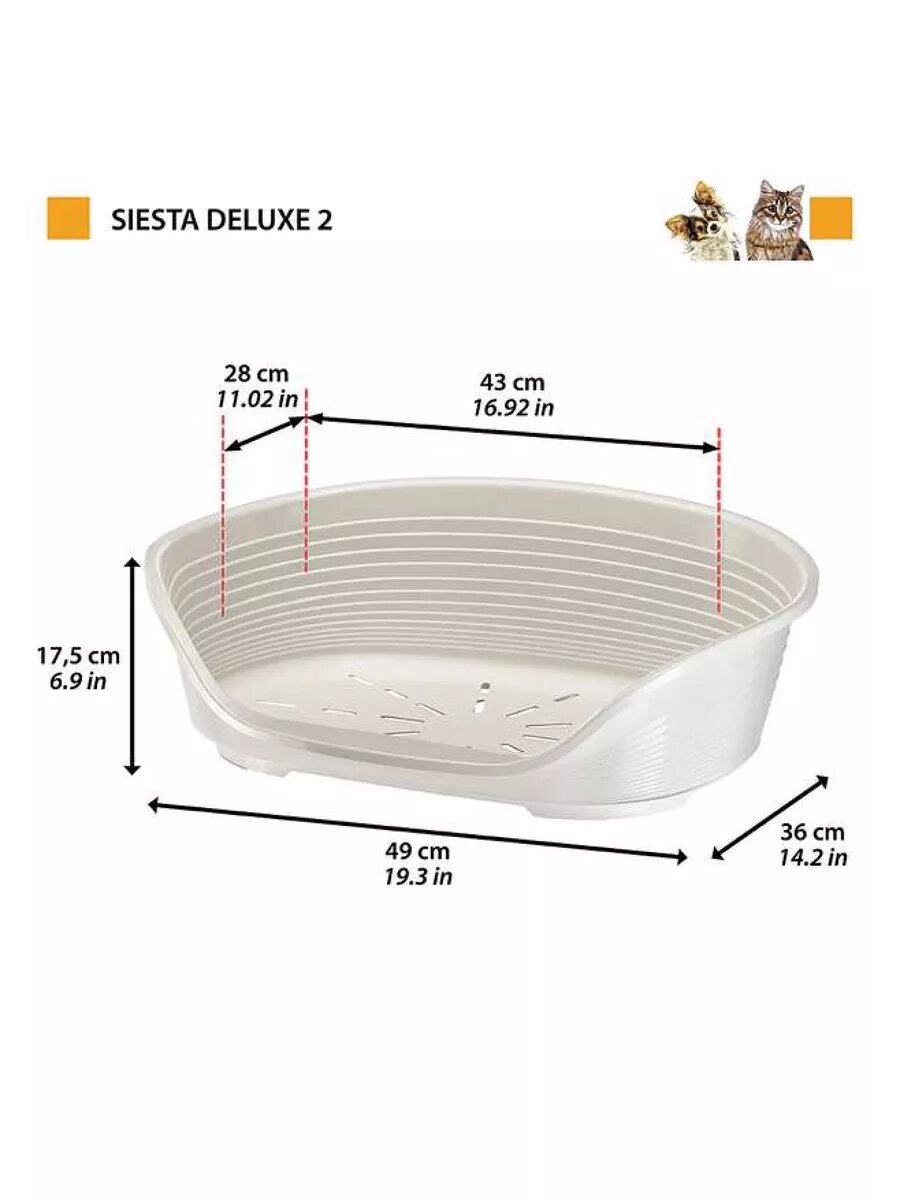 Лежак пластиковый для собак FERPLAST SIESTA DELUXE 2, 49 х 36 х 17,5 см (белый)