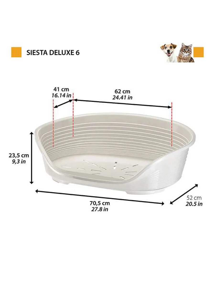 Лежак пластиковый для собак FERPLAST SIESTA DELUXE 6, 70,5 х 52 х 23,5 см (белый)