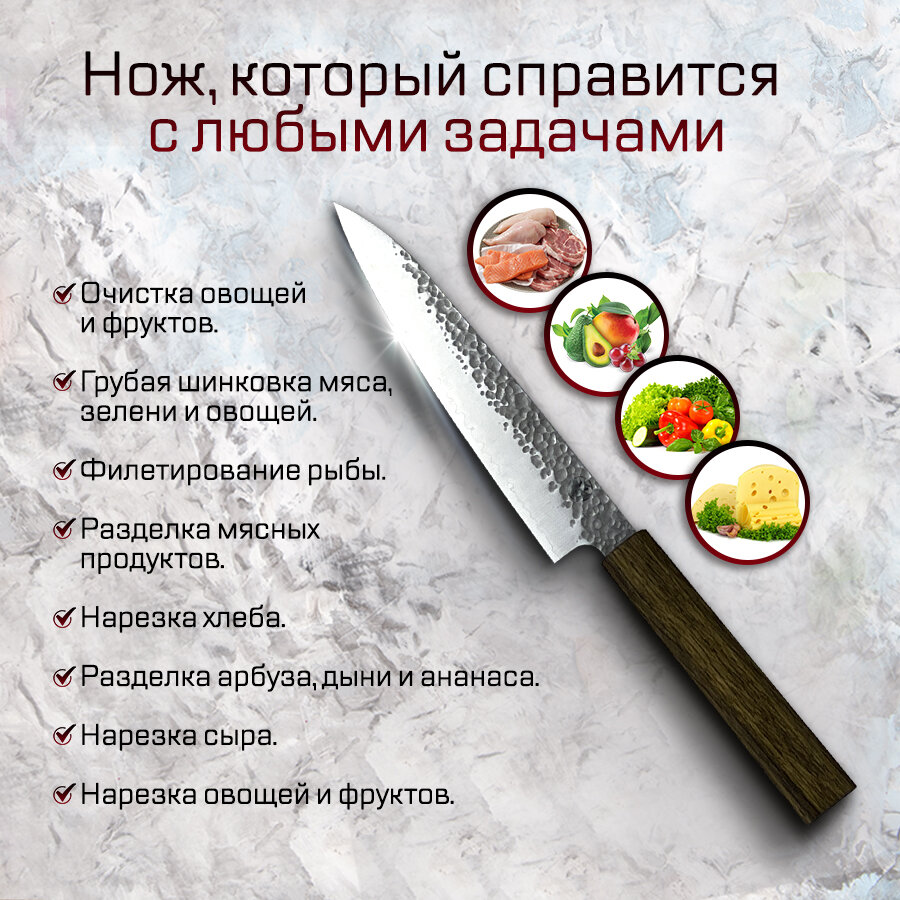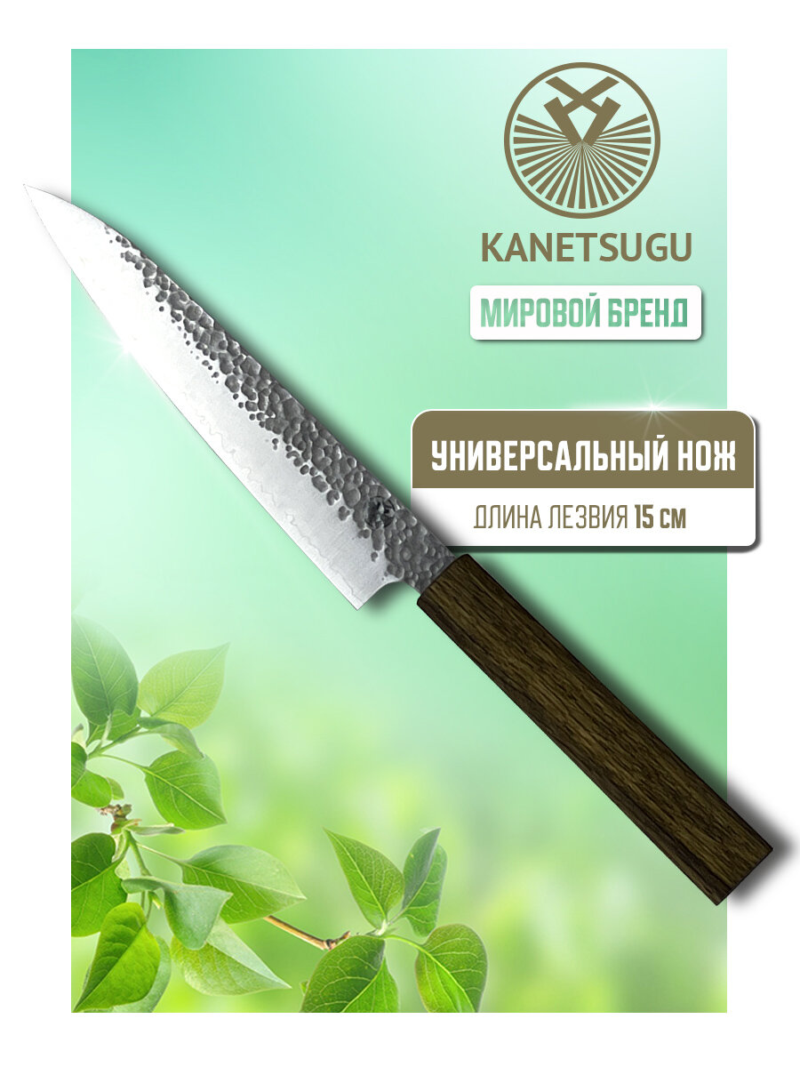 Кухонный нож универсальный Kanetsugu (7001), длина лезвия 13 см, сталь DSR1K6, рукоять дерево, заточка #8000