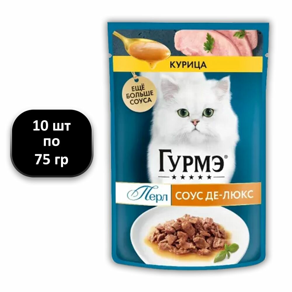 Купить Гурмэ перл соус де-люкс для взрослых кошек с курицей в соусе пауч 75 гр NEW 75 гр х 10 шт