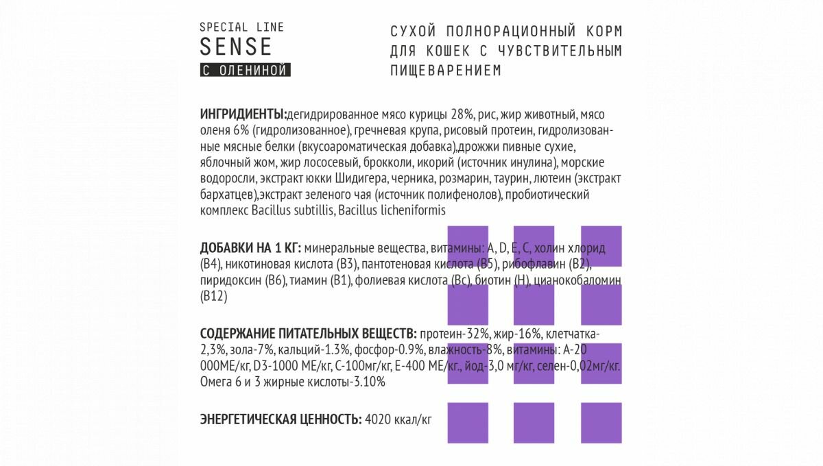 Сухой корм Sense для кошек с чувствит. пищеварением 400гр