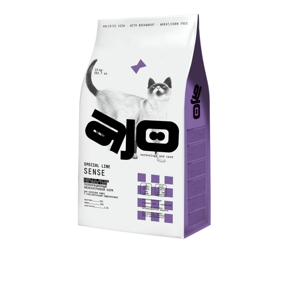 Сухой полнорационный корм AJO Cat Sense для кошек с чувствительным пищеварением, 10кг