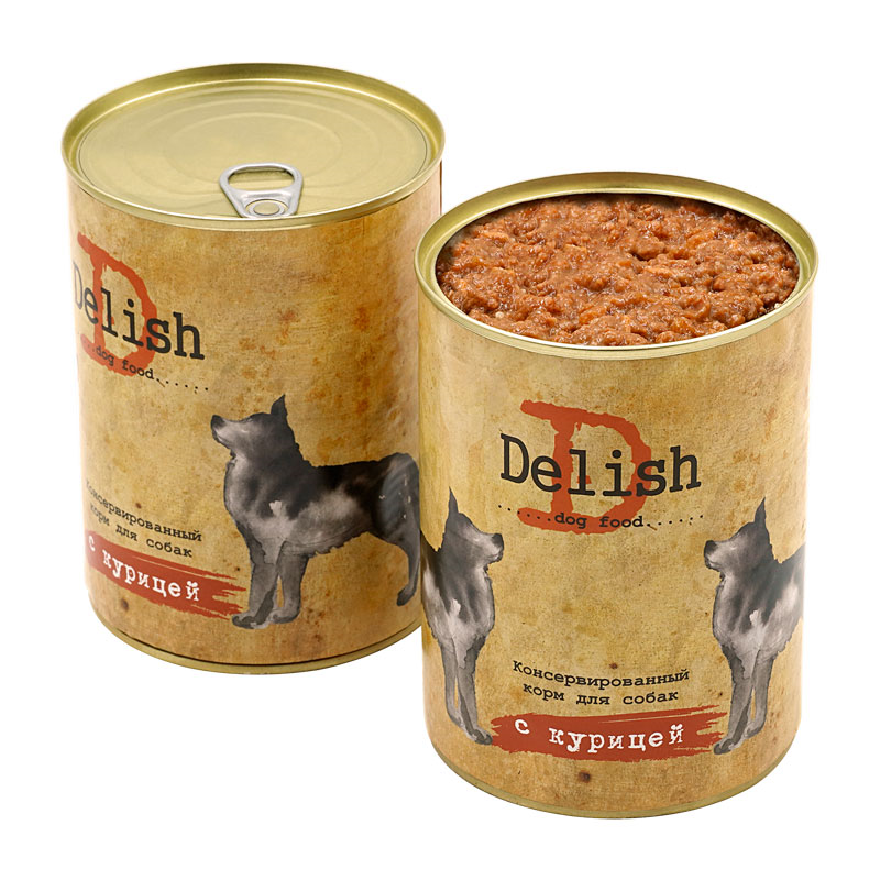 Влажный корм для собак Delish (курица), 12 шт по 970 гр