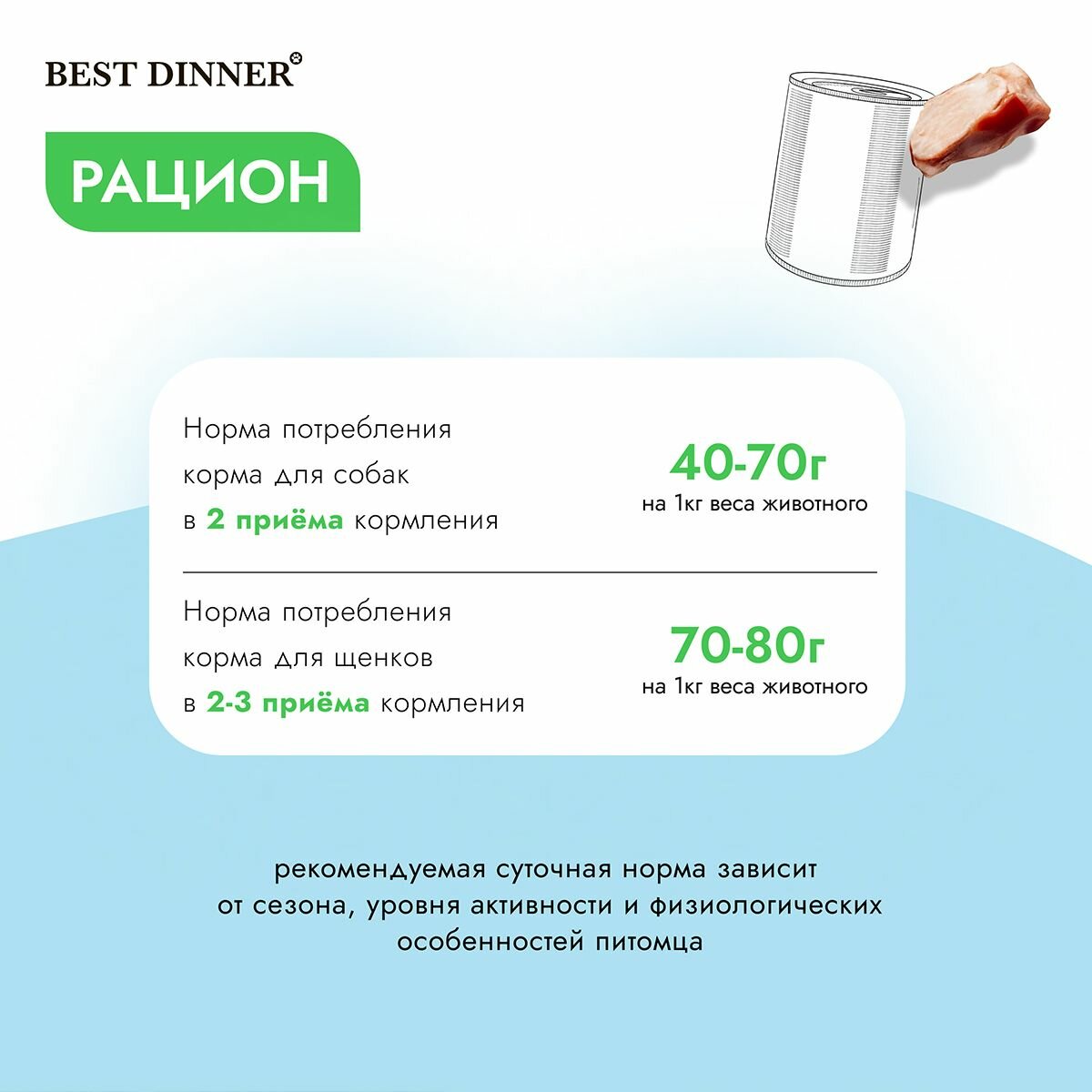 Консервы Best Dinner Exclusive Hypoallergenic для взрослых собак и щенков с 6 мес Профилактика пищевой аллергии с индейкой и кроликом 340г 7635