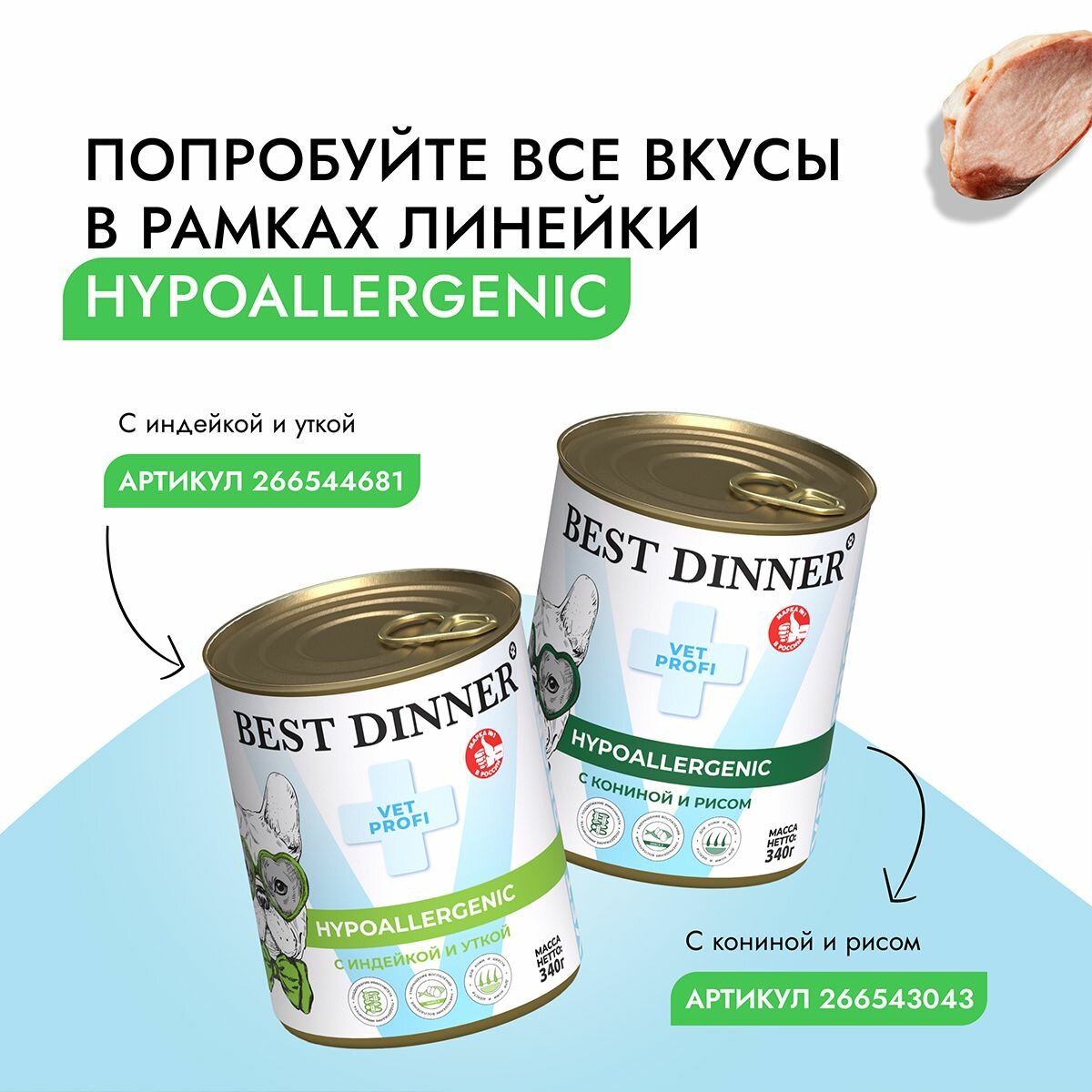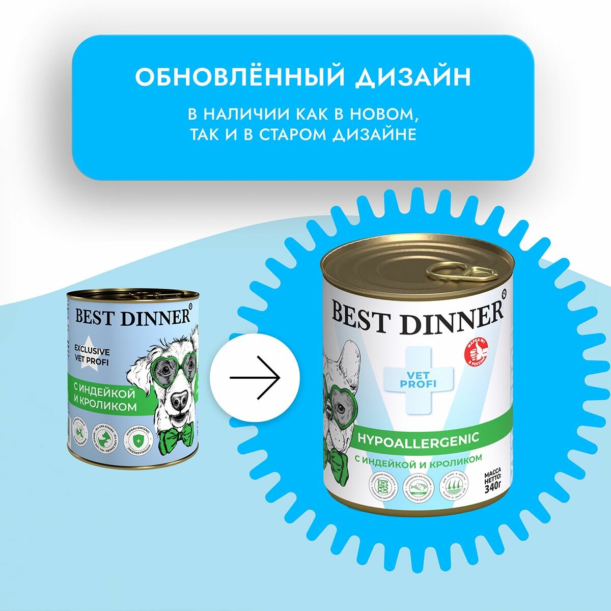 BEST DINNER EXCLUSIVE VET PROFI HYPOALLERGENIC для собак и щенков при пищевой аллергии с индейкой и кроликом (340 гр х 12 шт)
