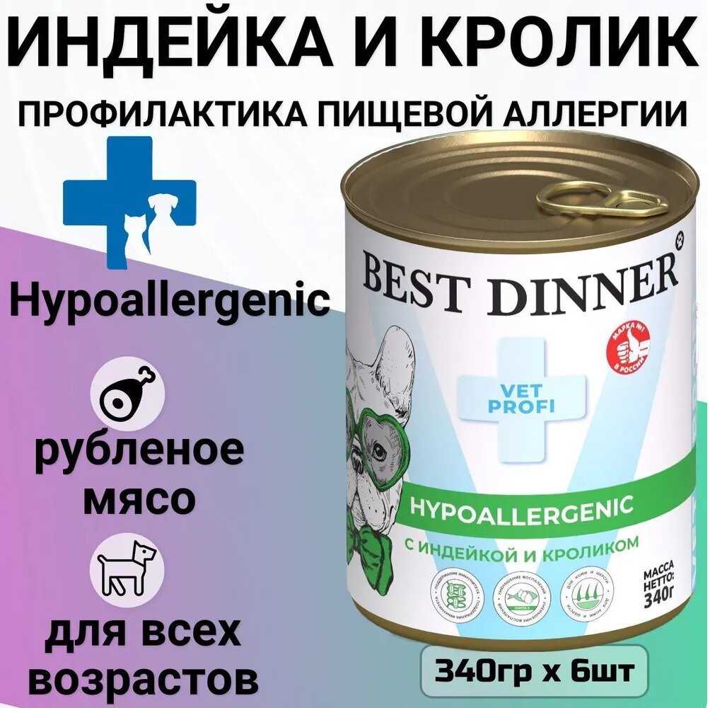 Влажный консервированный корм для собак Best Dinner Exclusive Vet Profi Hypoallergenic С индейкой и кроликом, 340г х 6 шт