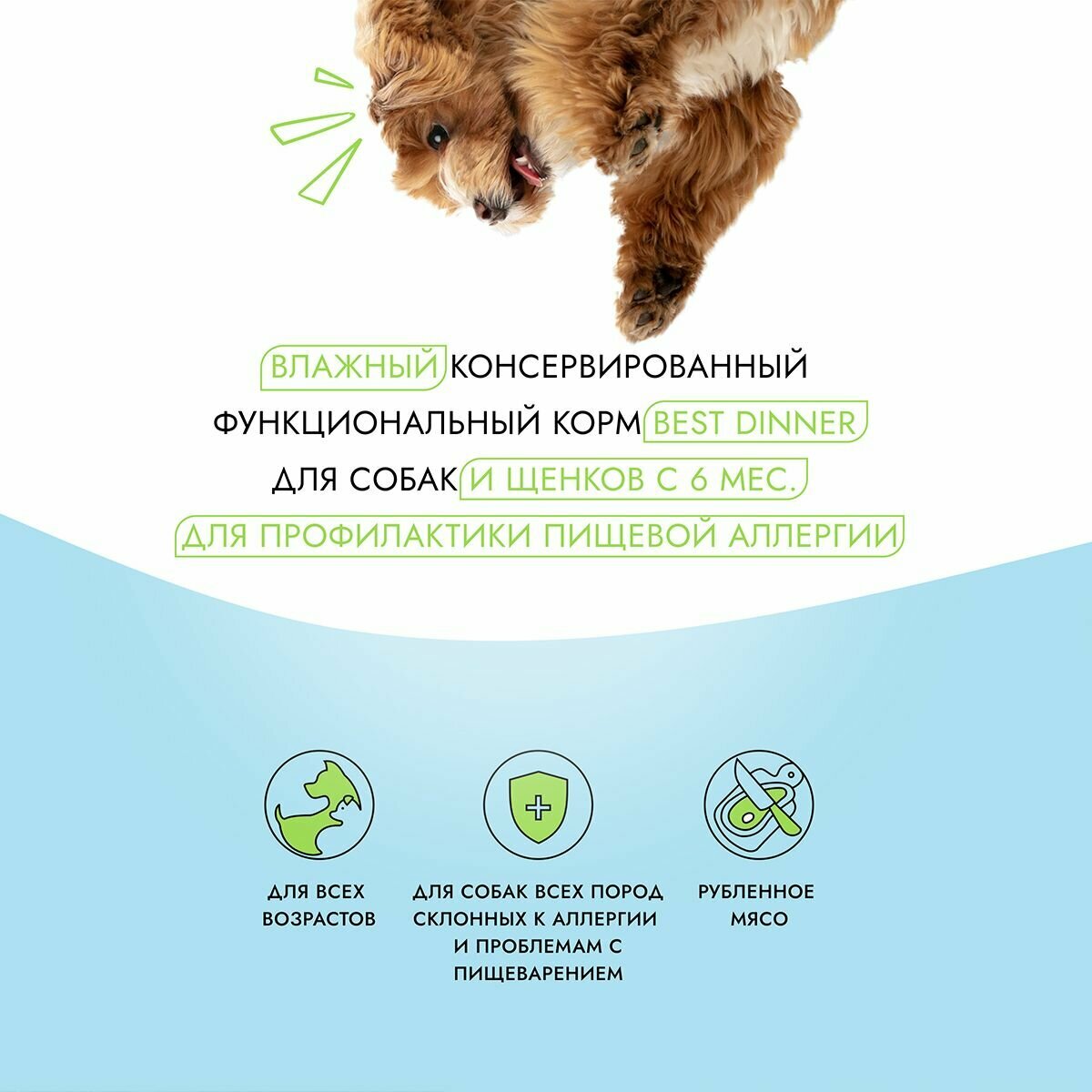 Влажный консервированный корм Best Dinner Бест Диннер для собак Exclusive Hypoallergenic, индейка, утка, 340 гр. по 12 шт.