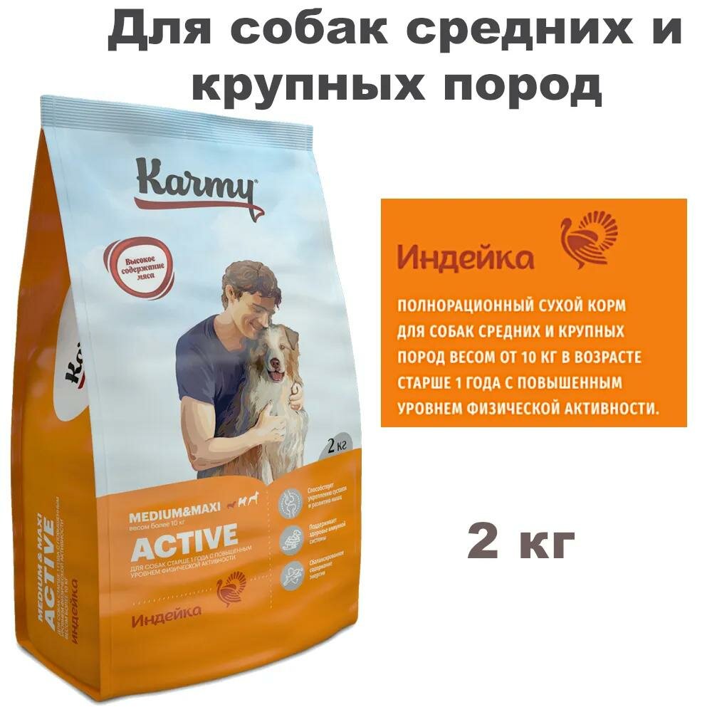 KARMY сухой корм для собак средних и крупных пород актив медиум и макси индейка 2кг