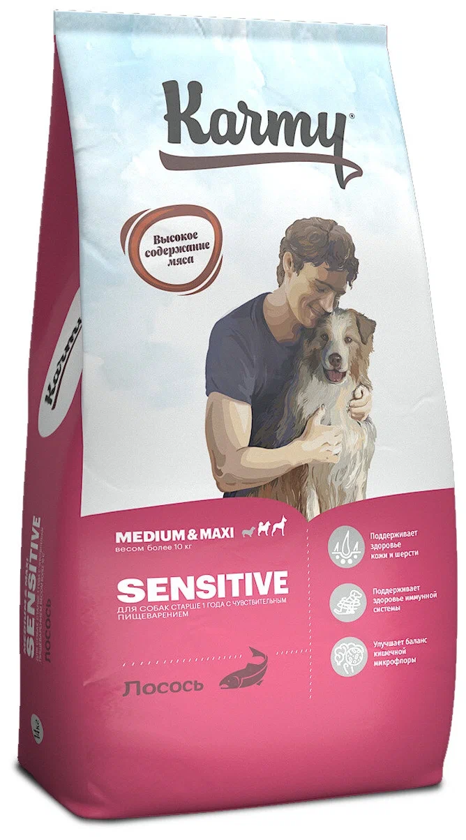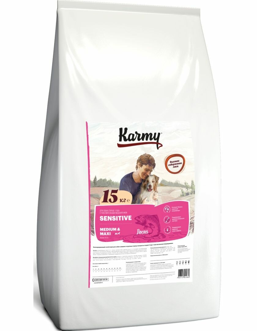 KARMY SENSITIVE MEDIUM & MAXI 14 кг Карми для взрослых собак средних и крупных пород с чувствительным пищеварением с лососем