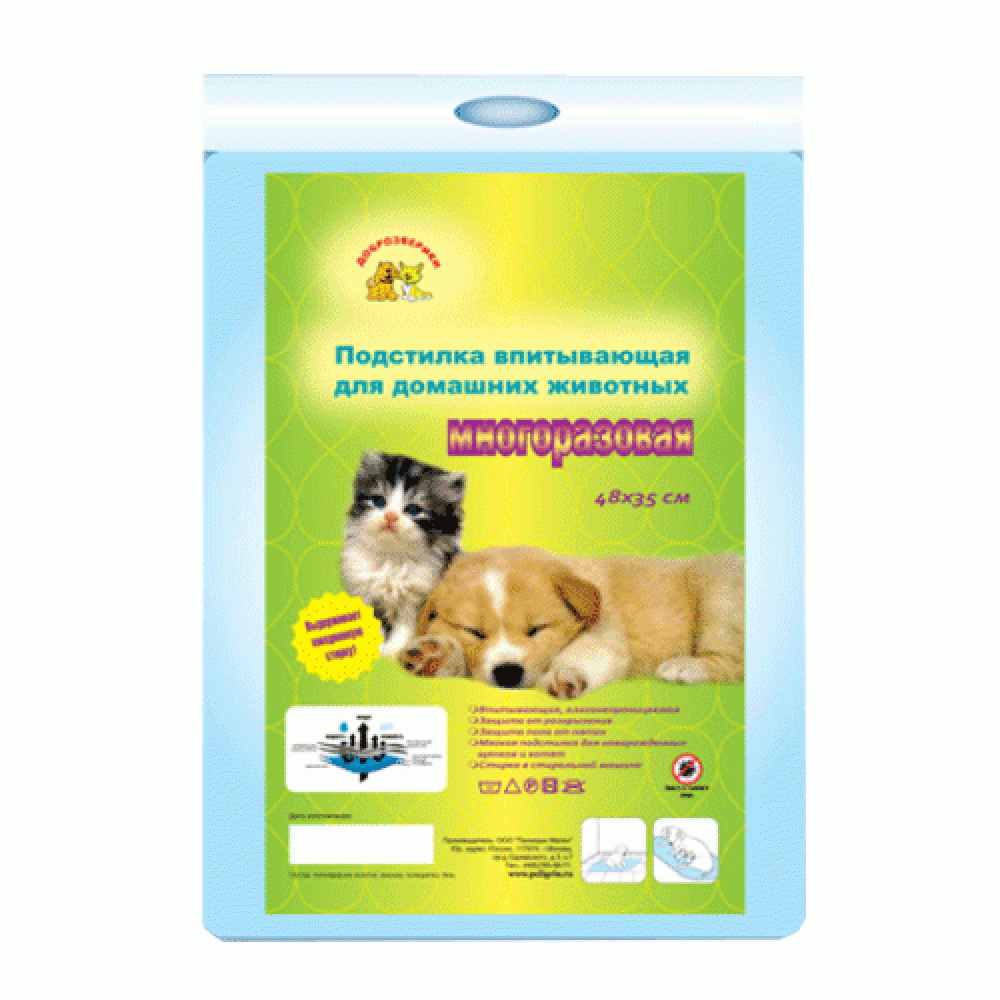 Подстилки Пелигрин Доброзверики для животных домашних впитывающая многоразовая 48*35см 62164