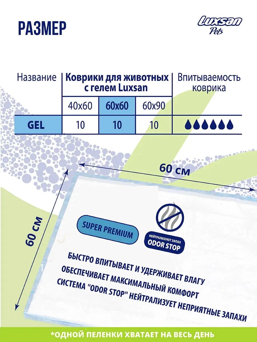Купить Пеленки для животных LUXSAN Premium GEL коврик 60*60см 10шт/уп