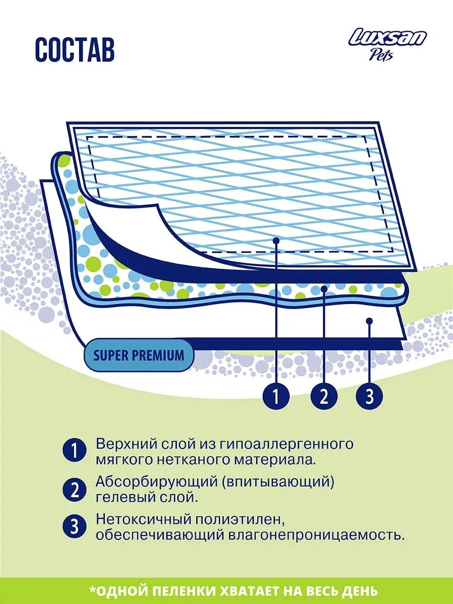 Luxsan Pets Пеленки для собак Premium, 60 х 90 см, 20 шт