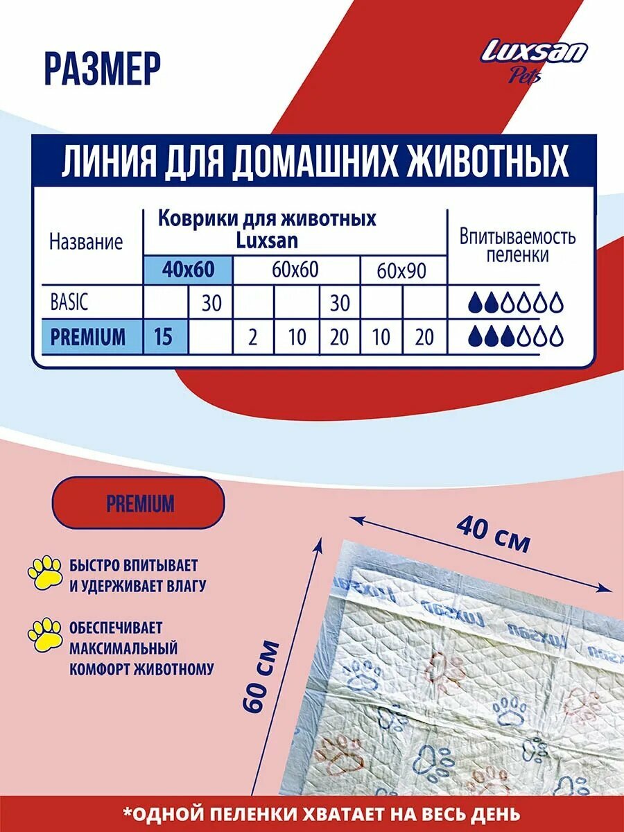 Купить Пеленки для собак и кошек LUXSAN Premium коврик 40*60см 15шт/уп.