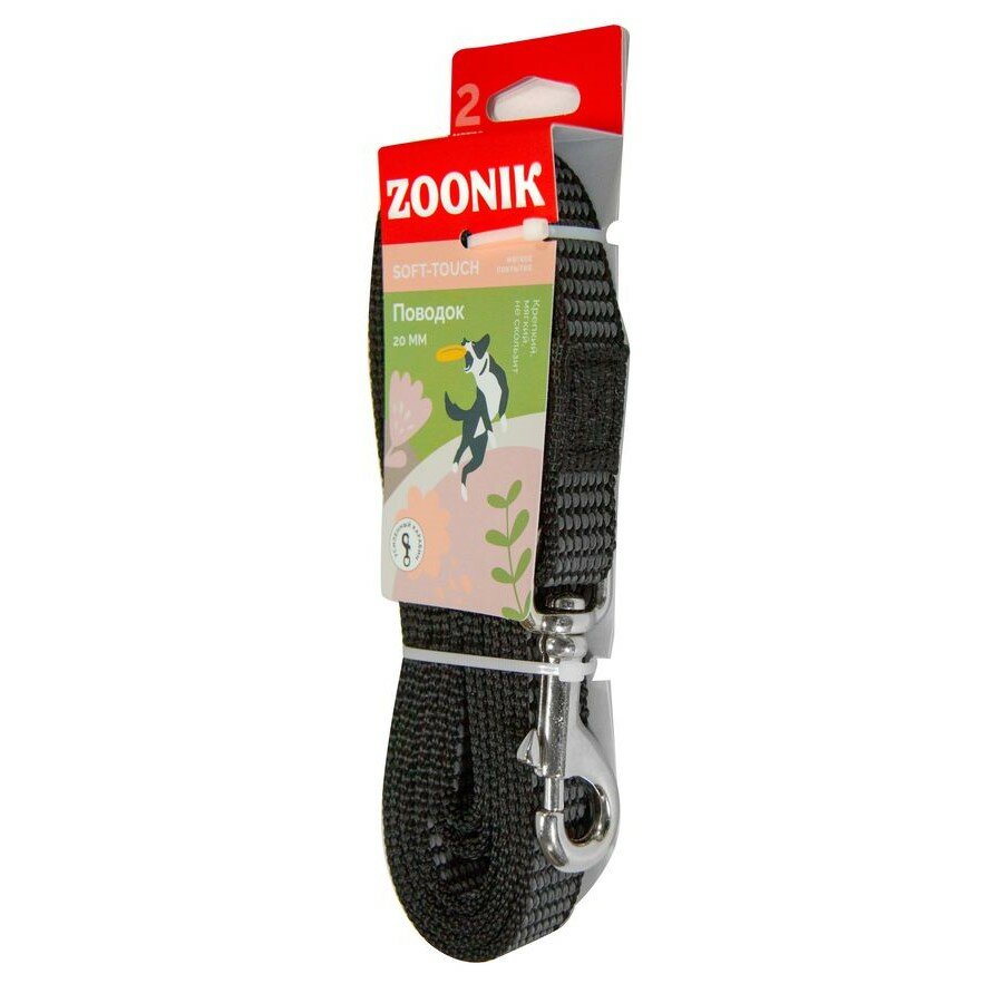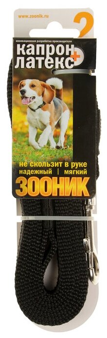 Поводок для собак 20 мм Зооник капроновый с двойной латексной нитью черный 2 м (1 шт)