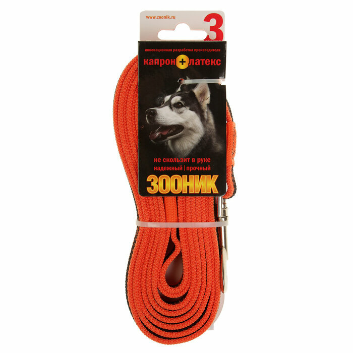 Поводок для собак 15 мм Зооник капроновый с латексной нитью оранжевый 3 м (1 шт)