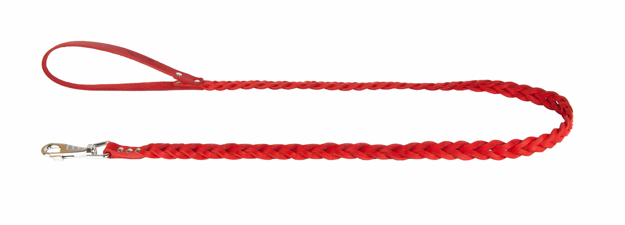 Купить Поводок-Плетенка аркон кожаный плетение - косичка, импортный карабин красный для собак (120 см/12 мм)