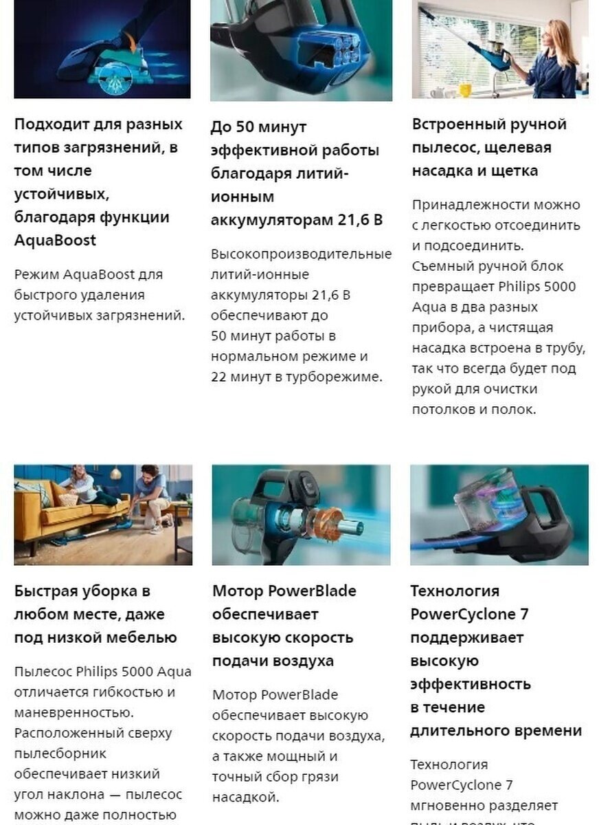 | Отзыв: | Долго выбирали беспроводной пылесос, по характеристикам понравился Дайсон 10 и этот Филипс. Выбрали Филипс из-за возможности влажной уборки. Пользуемся пару месяцев, жена в восторге. Красивый дизайн, рука быстро привыкает к весу пылесоса (естественно рукоять тяжелее, чем у обычного, но для моей миниатюрной супруги вес подошел; тоже самое касается длины пылесоса - да, она не регулируется, но длина универсальна и удобна как для высоких, так и для невысоких пользователей, благодаря своей маневренности). Подсветка - приятный бонус, хорошо видно пропущенные участки или темные углы под различными поверхностями.
