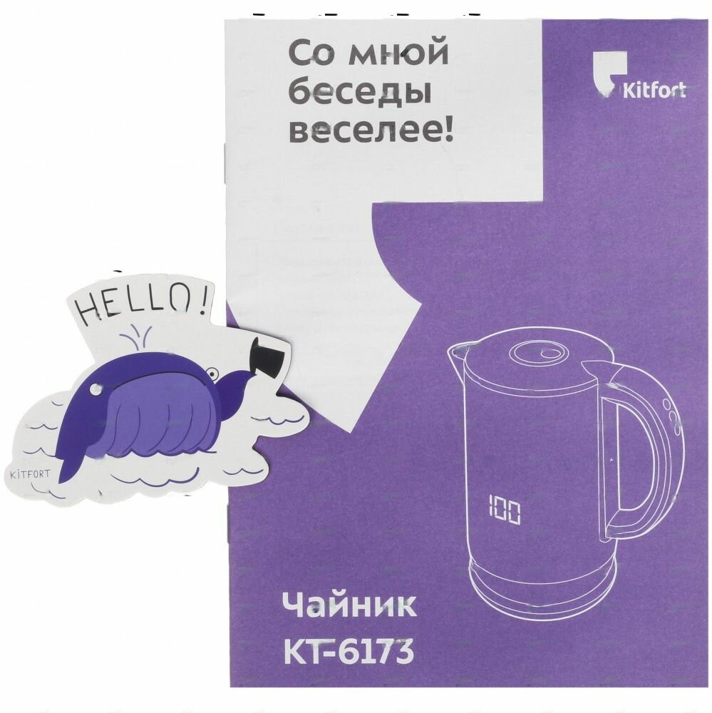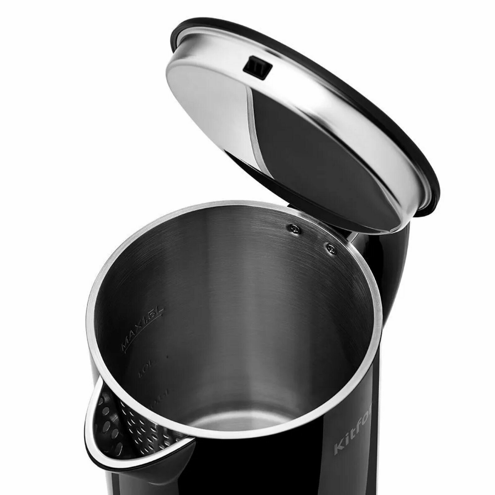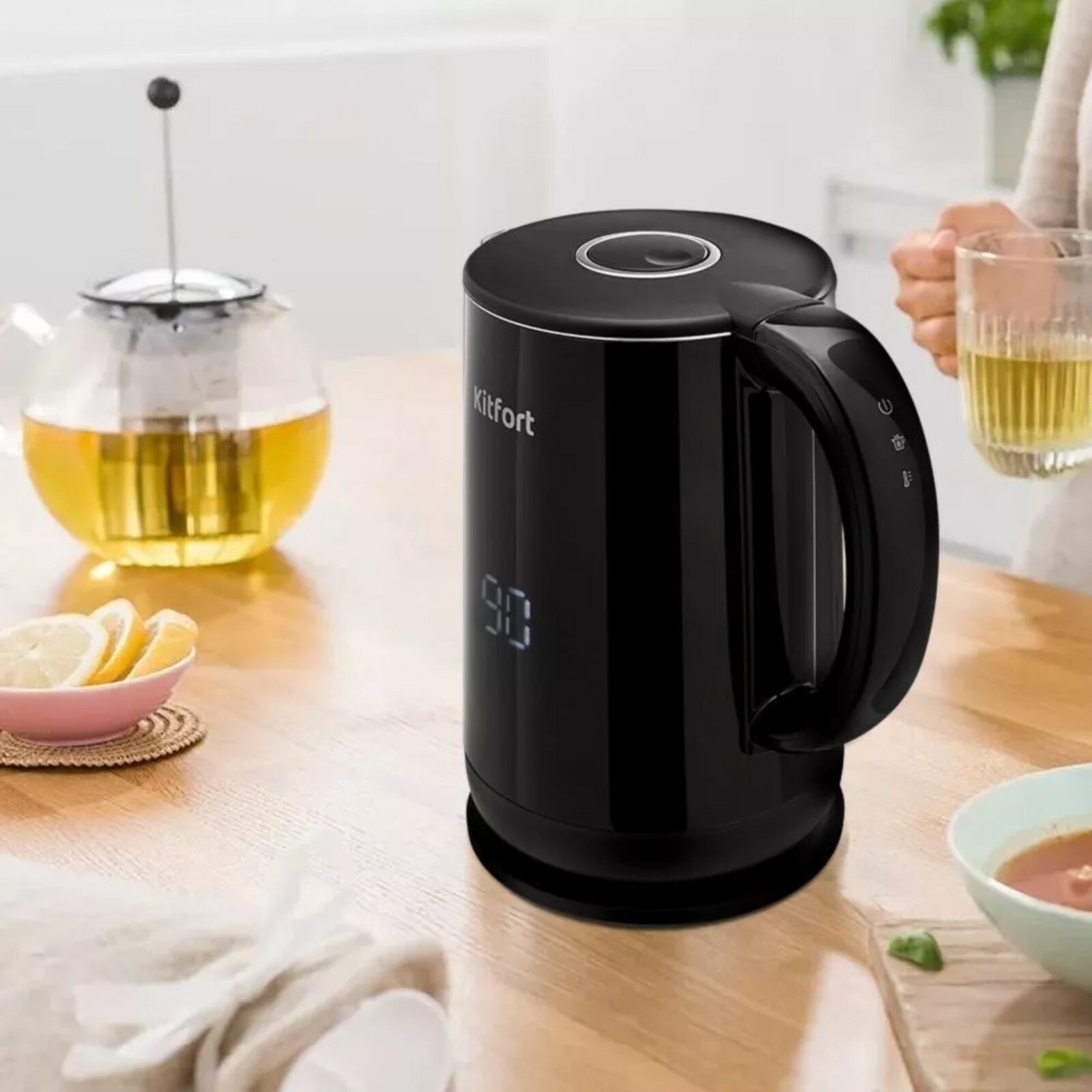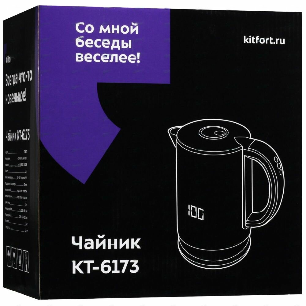 Чайник электрический Kitfort КТ-6173, пластик, колба металл, 1.5 л, 2200 Вт, чёрный
