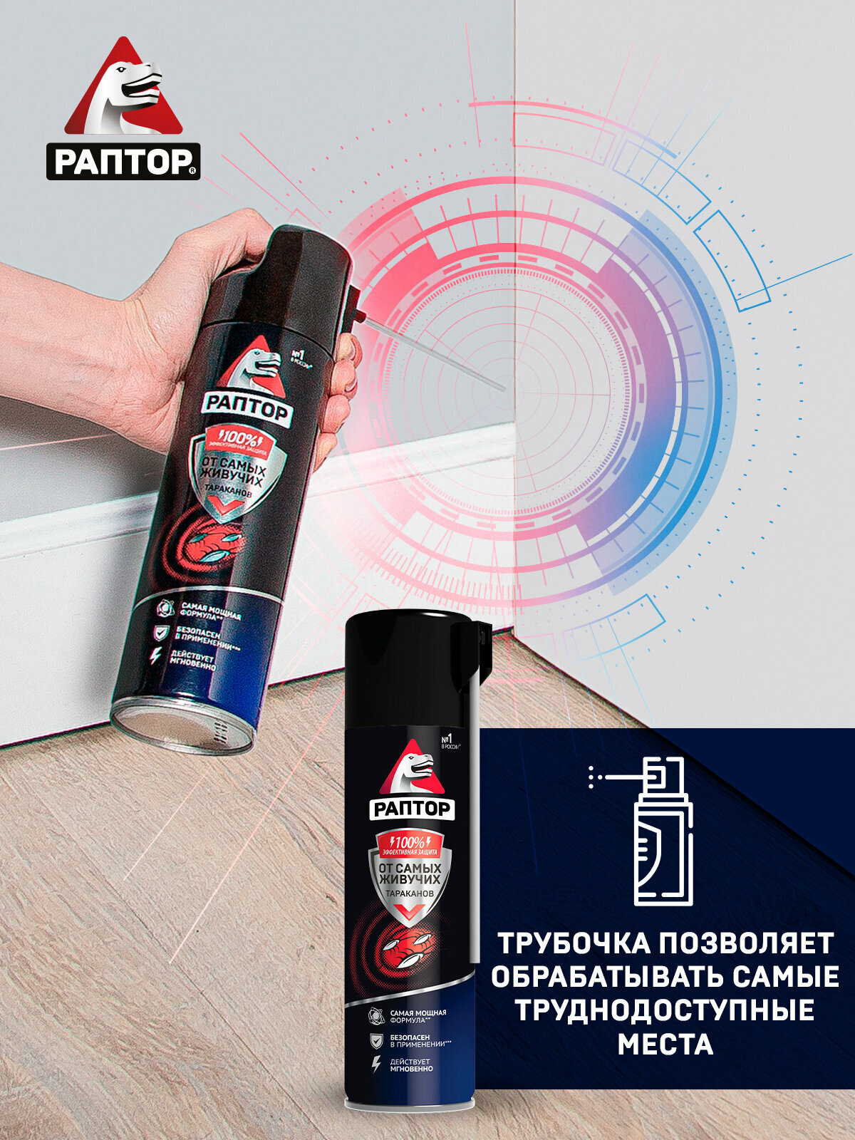 Раптор от самых живучих тараканов Аэрозоль инсектицидный повышенной эффективности от тараканов и других ползающих насекомых 275 мл