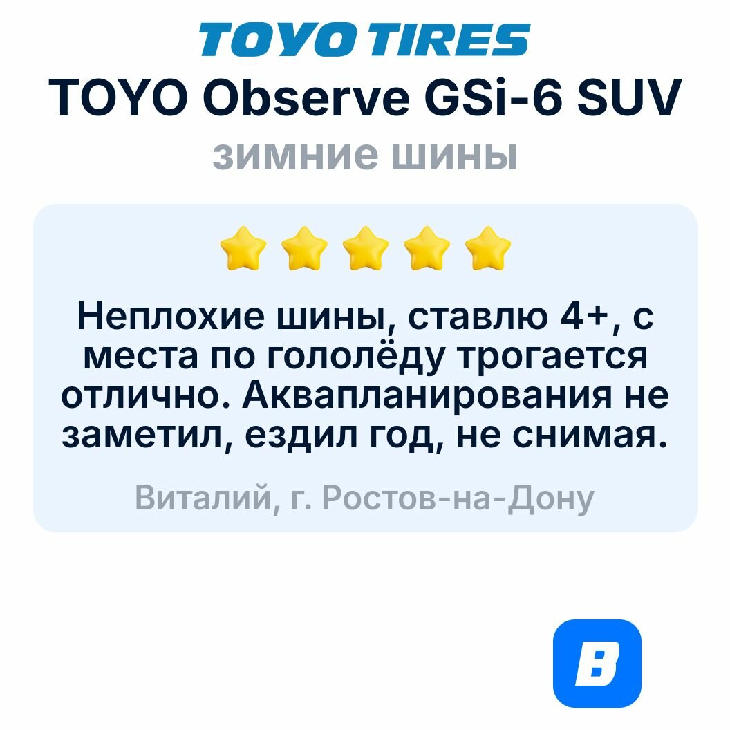 Ниже Вы можете прочитать отзывы на Шина Toyo(Тойо) OBSERVE GSi6 SUV 245/50 R20 102H зимняя липучка, ознакомится с подробными характеристиками, посмотреть интересные обзоры и фотографии на Шина Toyo(Тойо) OBSERVE GSi6 SUV 245/50 R20 102H зимняя липучка.