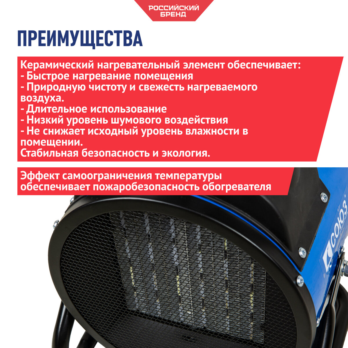 Керамический обогреватель СОЮЗ ТВС-3022К 3 кВт интересное: