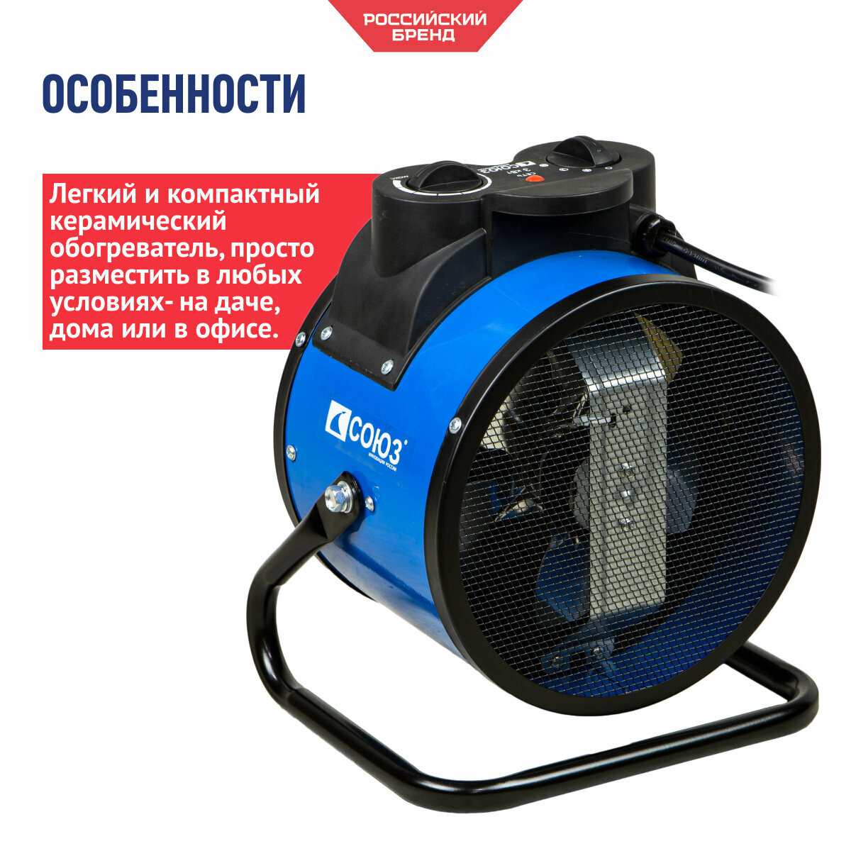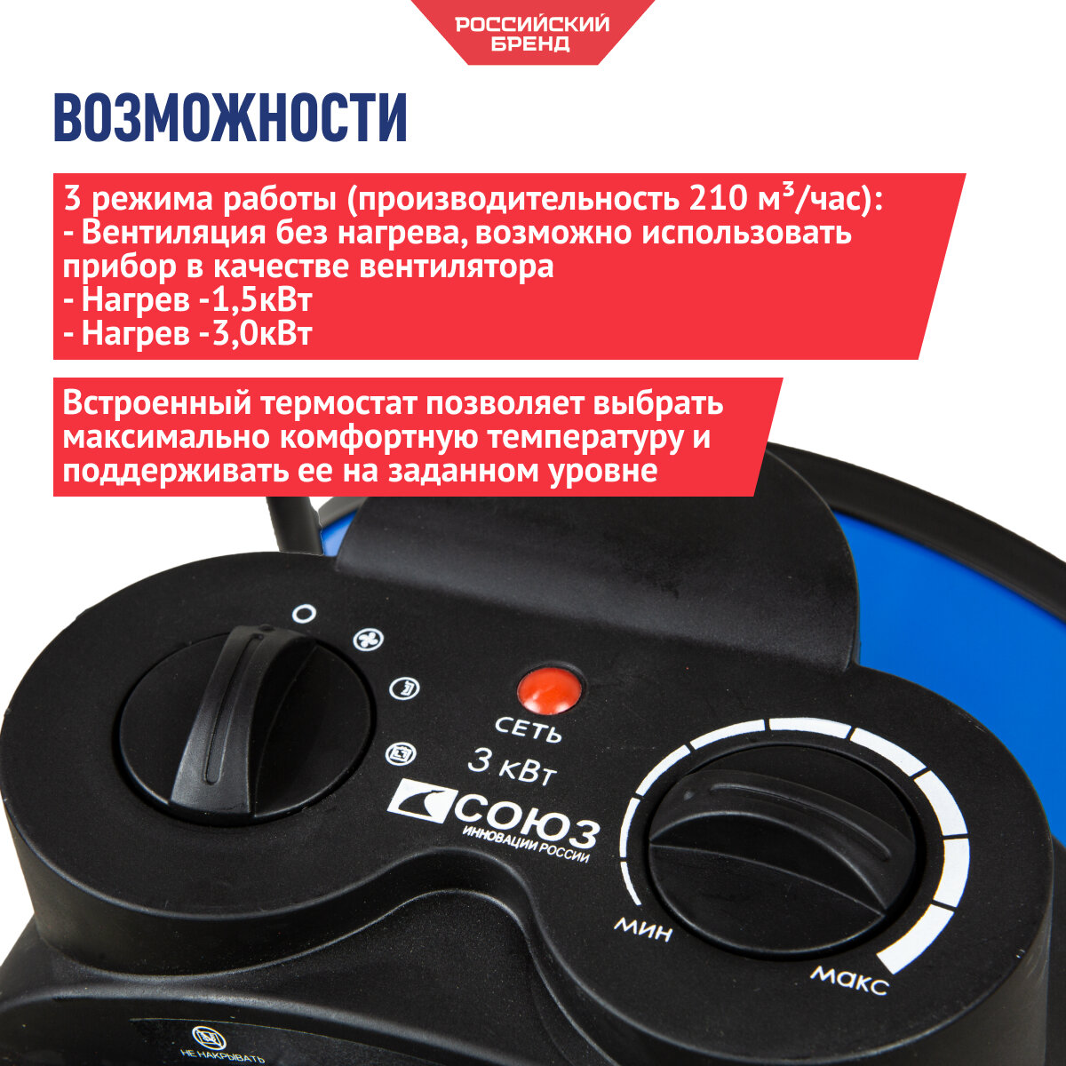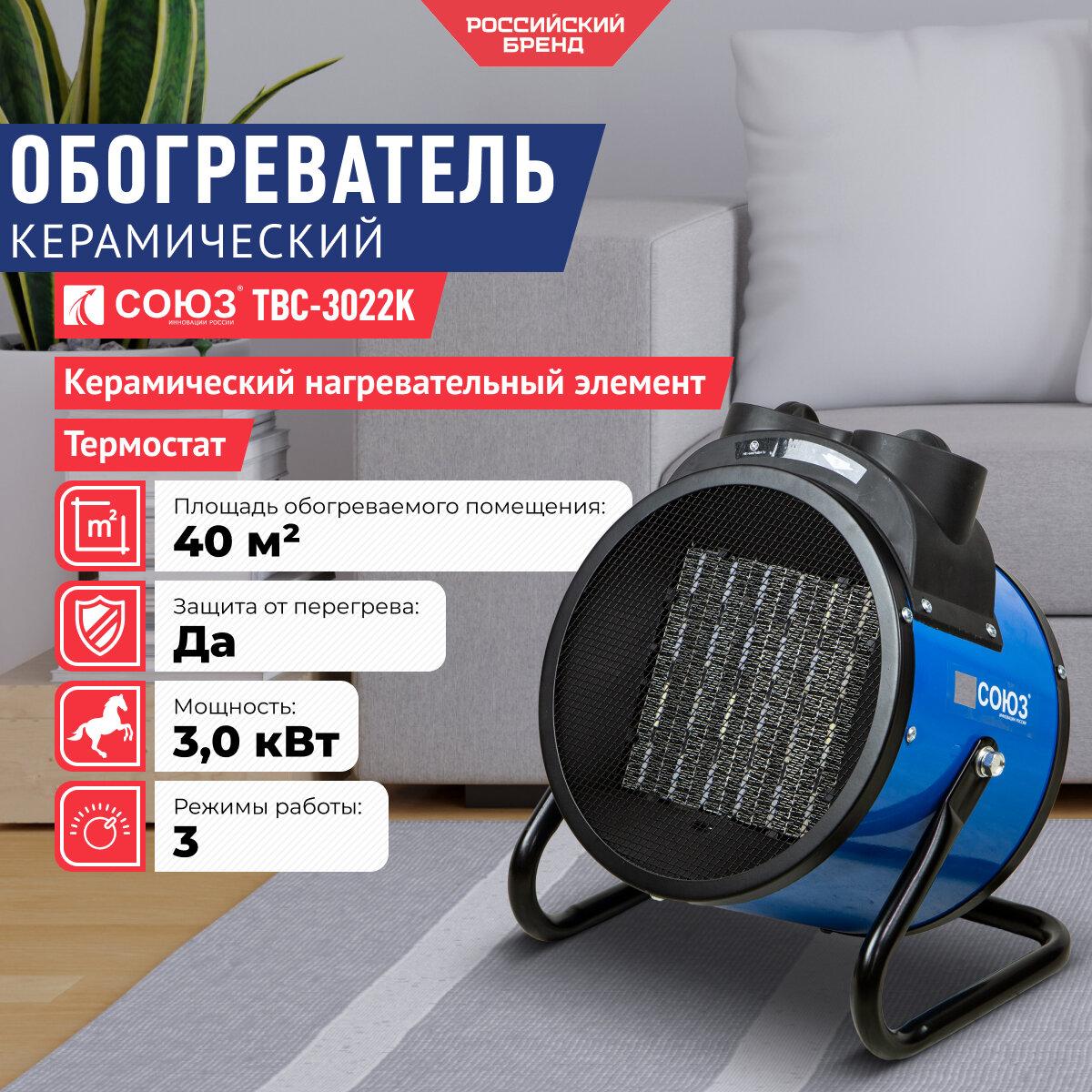 Тепловентилятор СОЮЗ ТВС-3022К, 3 кВт, 30 м², синий/черный