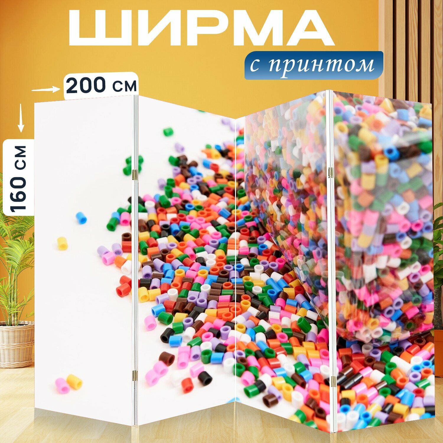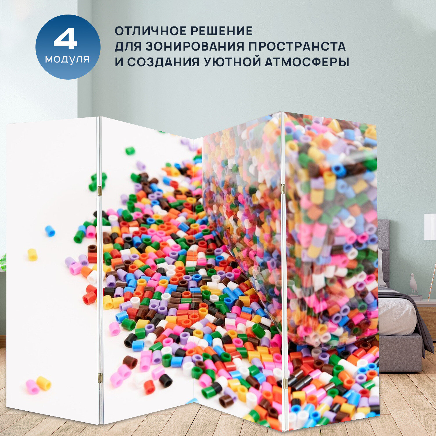 Ширма "Зеленый, розовый, синий" перегородка для зонирования комнаты с принтом 280x175 см. на холсте