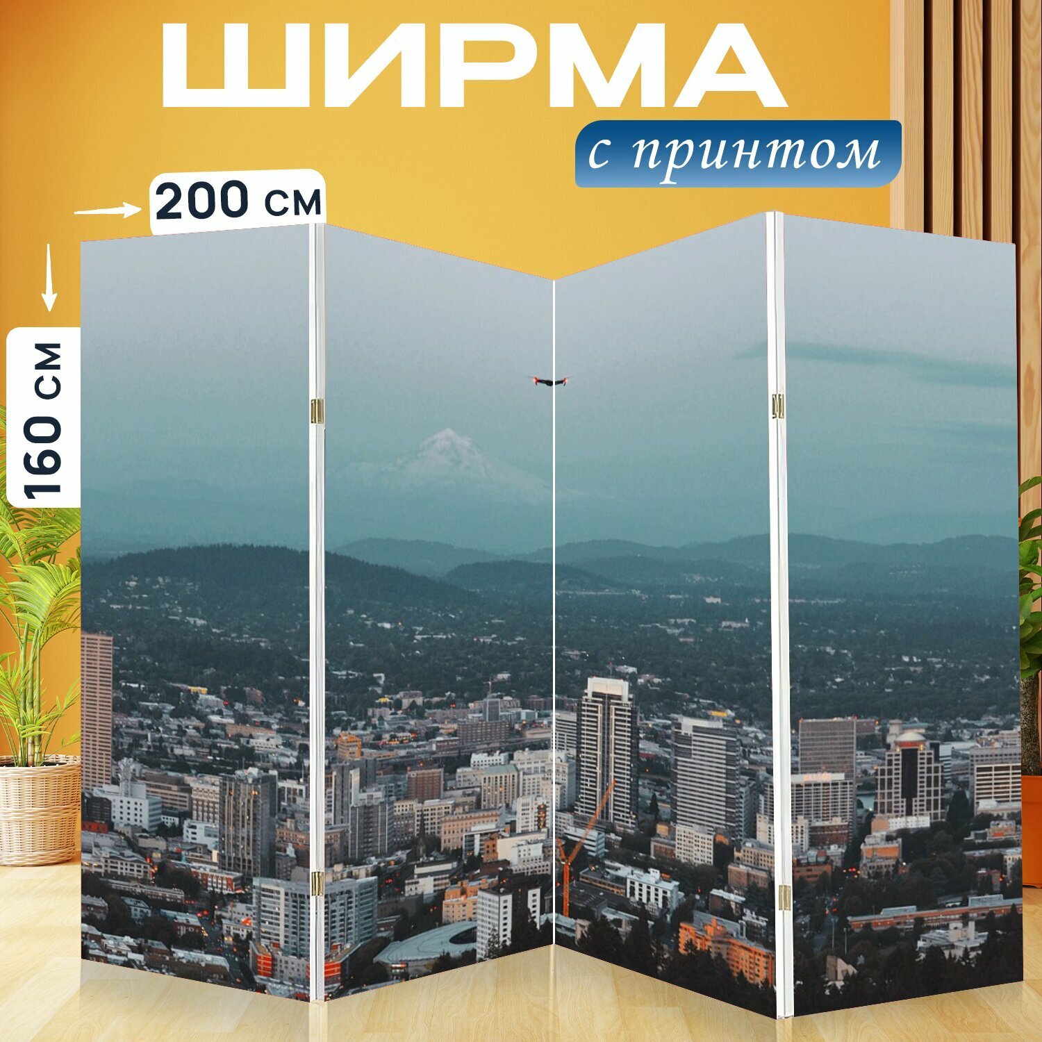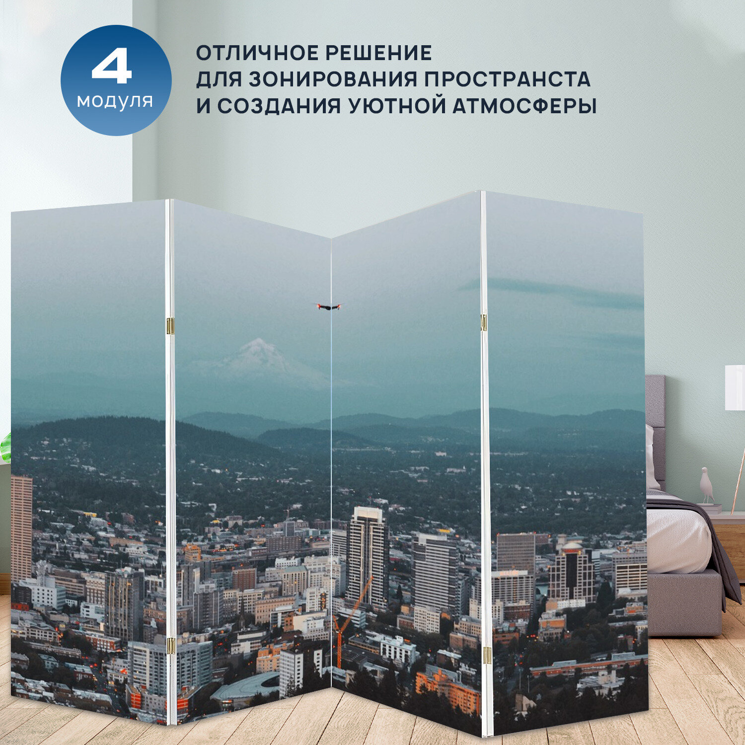Ширма "Лос анджелес, город, панорама" раскладная перегородка для зонирования с принтом на холсте интересное: