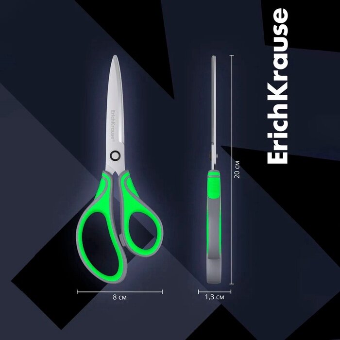 Ножницы Erich Krause Megapolis Ergo, 200мм, асимметричные ручки, мягкие вставки (45740)