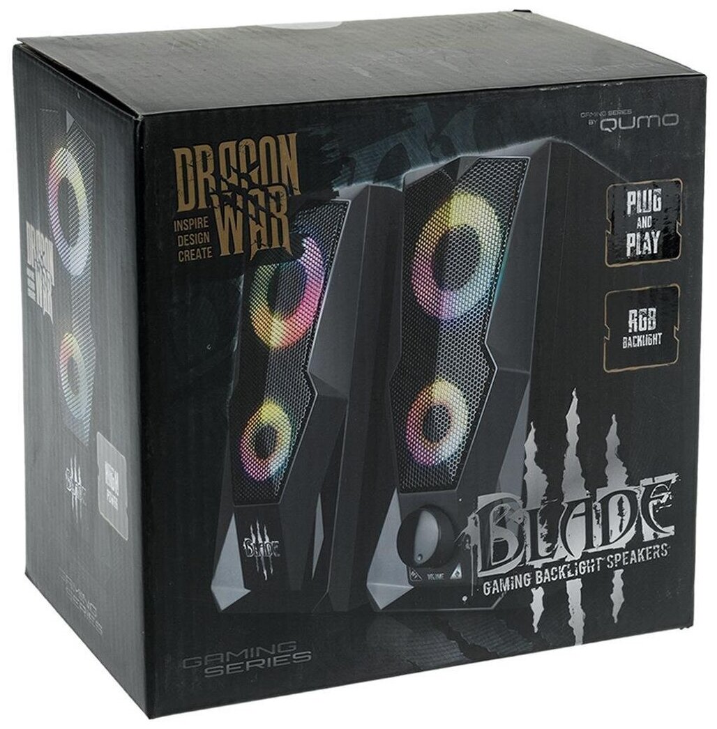 Колонки Qumo Blade AS001 2.0, 15 ВТ, объемное звучание, RGB подсветка