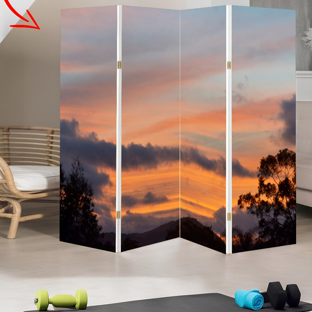 Купить Ширма "Небо, золотой час, оранжевый градиент" раскладная перегородка для зонирования с принтом на холсте