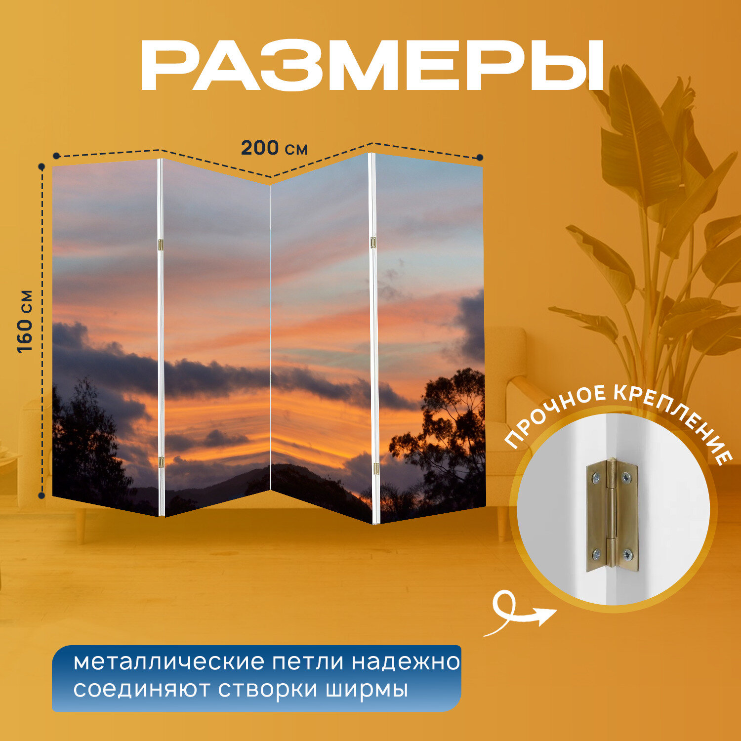 Ширма "Небо, золотой час, оранжевый градиент" раскладная перегородка для зонирования с принтом на холсте интересное: