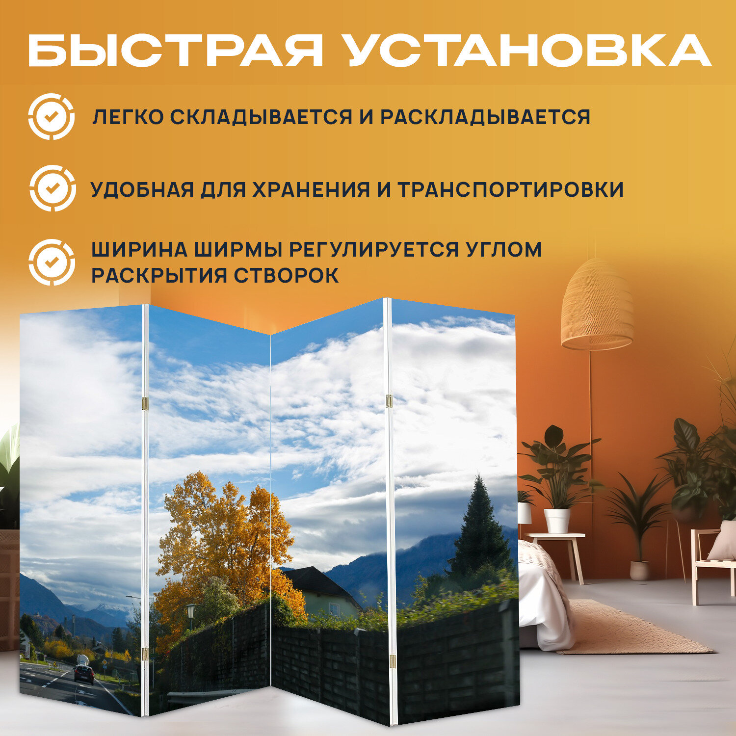 Ширма "Дорога, машины, движение" раскладная перегородка для зонирования с принтом на холсте интересное: