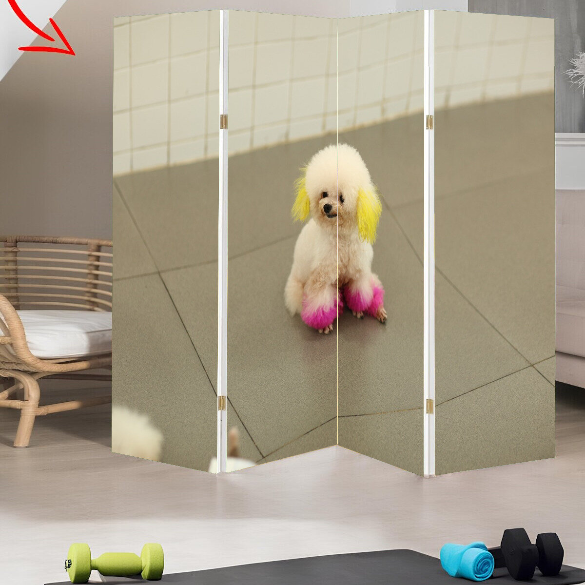 Ширма "Собака, щенок, домашний питомец" раскладная перегородка для зонирования с принтом на холсте интересное: