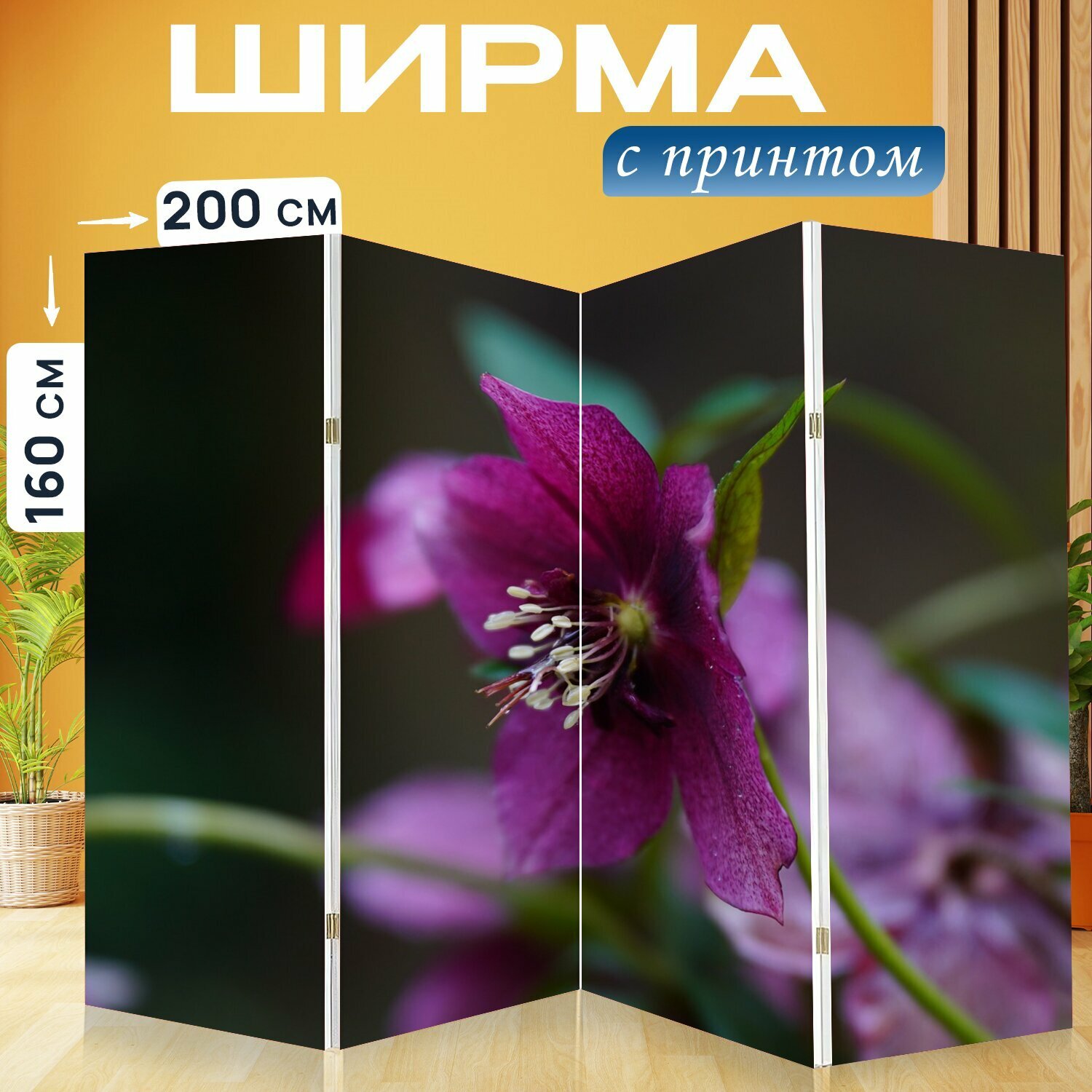Купить Ширма "Рождественская роза, билли роуз, морозник восточный" раскладная перегородка для зонирования с принтом на холсте