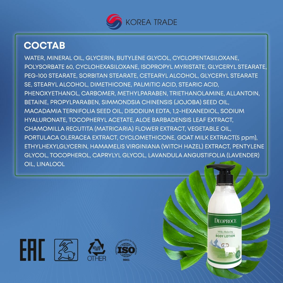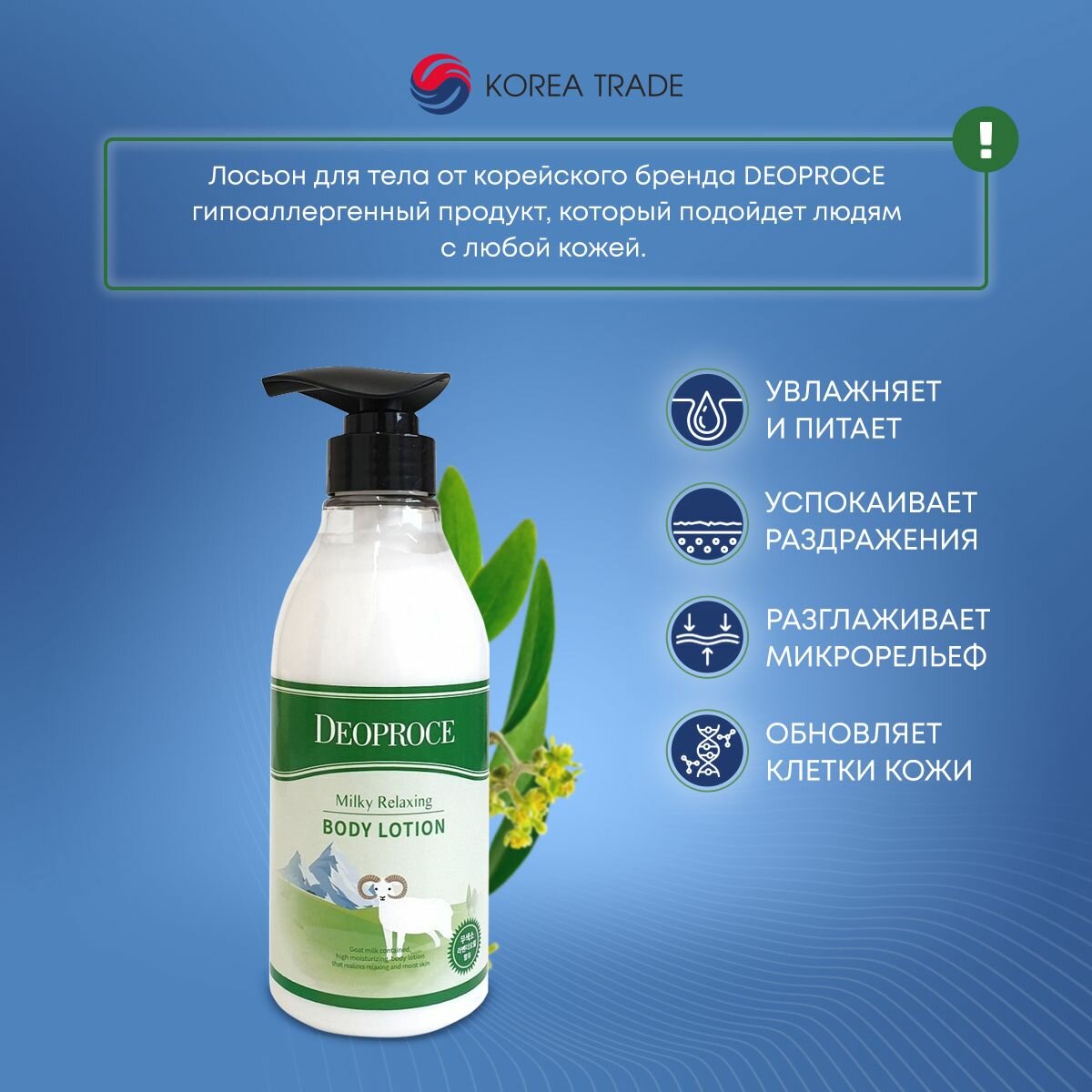 Ниже Вы можете прочитать отзывы на Успокаивающий лосьон для тела с экстрактом козьего молока DEOPROCE MILKY RELAXING BODY LOTION 500мл./ Лосьон увлажняющий, питающий, заживляющий, повышающий упругость кожи, Антицеллюлитный / Корейская косметика, ознакомится с подробными характеристиками, посмотреть интересные обзоры и фотографии на Успокаивающий лосьон для тела с экстрактом козьего молока DEOPROCE MILKY RELAXING BODY LOTION 500мл./ Лосьон увлажняющий, питающий, заживляющий, повышающий упругость кожи, Антицеллюлитный / Корейская косметика.