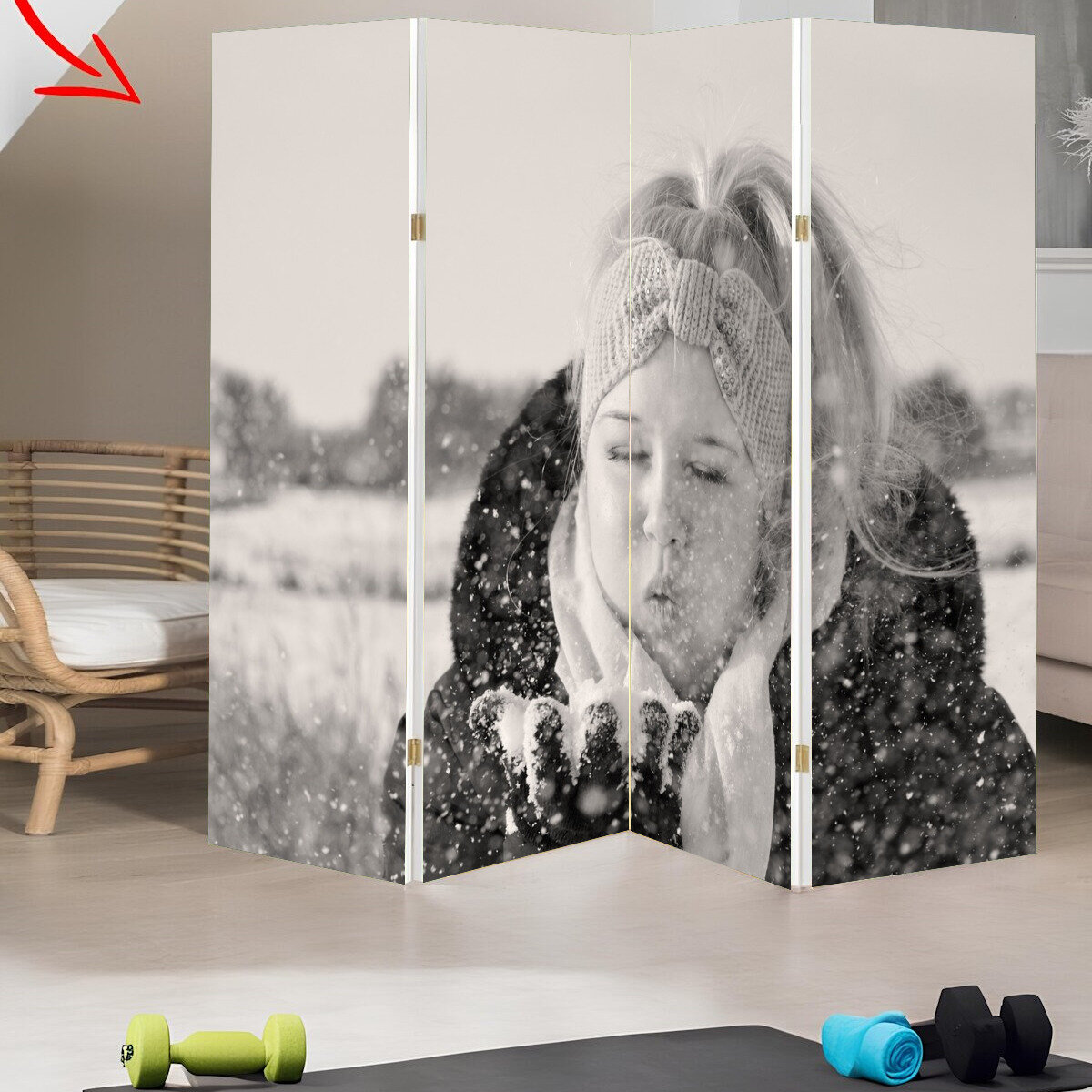 Ширма "Женщина, снег, дуть" перегородка для зонирования комнаты с принтом 280x175 см. на холсте